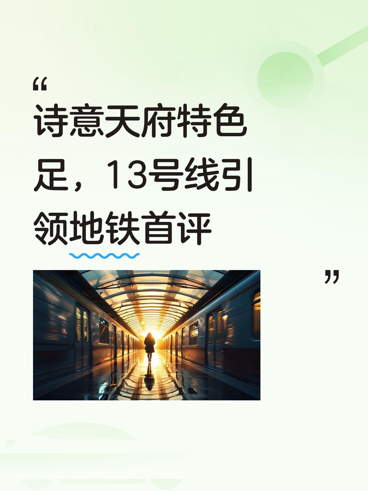 诗意天府成铁13号别有一番风味! 全线设有9座艺术站,不同的站蕴含着不一样的气息, 下车既可赏景,乘客无需踏出站口半步、站就是景的感觉 景也是站的设计构想,打破了传统设计的僵硬化风格, 恐怕这样的设计在省内省外所有地铁建设史上,并不多见科技构想吧! 荣获广大市民的密切关注 和首评! 以“诗意天府、人文成都”为设计主题,共打造了光华村、杜甫草堂、青羊宫、文翁石室、华西坝、新南门、九眼桥、三官堂、幸福梅林站共9座艺术车站! 这些艺术车站宛如一颗颗璀璨的明珠,镶嵌在13号线上,散发着独特的魅力。 走进光华村站, 站内的艺术装饰仿佛将人带入了一片宁静的田园诗境。 墙壁上的画作描绘着天府大地的丰收景象,金黄的麦浪随风摇曳, 农民们脸上洋溢着幸福的笑容,让人感受到了生活的质朴与美好。 杜甫草堂站 则弥漫着浓浓的诗意。以杜甫的诗歌为灵感,站内的灯光设计营造出一种清幽的氛围,仿佛让人能看到杜甫在草堂中挥毫泼墨,写下千古名篇。 墙壁上镌刻着杜甫的经典诗句,让人在匆匆的行程中也能品味到诗歌的韵味。 青羊宫站, 散发着道教的神秘气息。其装饰元素融入了青羊宫的建筑特色和道教文化符号, 让人仿佛置身于古老的道观之中,感受着道家文化的博大精深。 文翁石室站, 展现了成都悠久的教育历史。站内以文翁兴学的故事为主题,通过浮雕等艺术形式,生动地再现了古代学子们在石室中刻苦学习的场景,激励着每一个经过这里的人重视知识和教育。 华西坝站 体现了医学的严谨与人文关怀。站内的设计结合了华西医学的历史和现代医学的发展,展示了医学的进步与成就,也让人感受到了医者的仁心。 新南门站 充满了城市的活力与热情。它以新南门的繁华景象为蓝本,通过色彩鲜艳的壁画和动感的灯光,展现了成都这座城市的多元与包容。 九眼桥站, 则与周边的酒吧文化相呼应。站内的设计充满了时尚和艺术感,灯光闪烁,仿佛让人置身于热闹的夜生活之中。 三官堂站, 以当地的民俗文化为特色。墙壁上展示着三官堂的传统习俗和民间故事,让人了解到这片土地的独特文化。 幸福梅林站则给人带来了满满的幸福感。站内以梅花为主题,梅花的图案和造型随处可见, 寓意着美好和吉祥,让人在出站的瞬间感受到生活的甜蜜。 成都地铁13号线的这9座艺术车站,几乎嵌进了半个成都的灵魂,不仅是交通枢纽,更是文化的载体,它们让每一位乘客在出行的同时,都能领略到“诗意天府、人文成都”的独特魅力,也为这座城市增添了一道亮丽的风景线。 现在就等她的开通了,估计不会等太久了,到时一定会去体验乘坐的,欣赏一番这座城市就近的诗词画意,既出行的便捷!