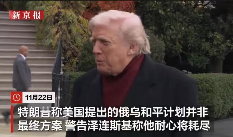 特朗普警告泽连斯基,称他耐心将耗尽,如果泽连斯基不接受方案,那么就继续拼命战斗去!美国近期起草了一份旨在结束俄乌冲突的新方案,方案包括28点内容。从目前网传的方案来说,该计划对俄罗斯利好,普京应该是满意了。由此可见,特朗普只考虑强者的感受。至于泽连斯基和欧洲各国领导人,他已经忽略不计了。眼下的情况很简单,一旦泽连斯基拒绝美国的“好意”,那么今后美国武器和美国情报将彻底断供。失去了这两样,乌克兰的下场是可想而知的!