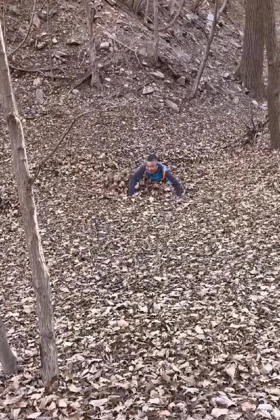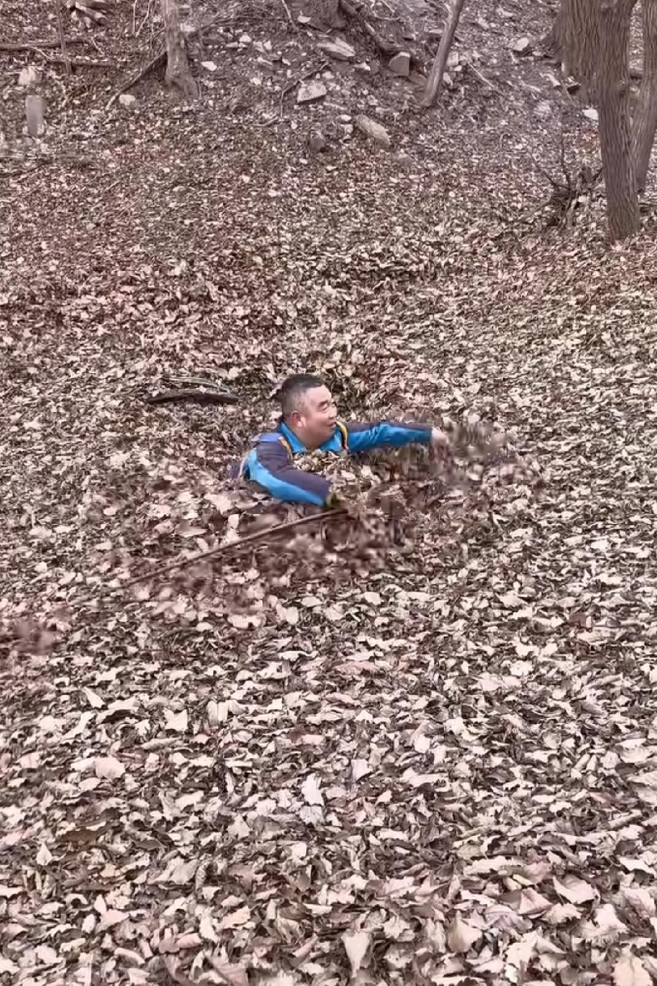 城市人真会玩,难道你们真不知道,这地方容易有蛇吗?胆子不是一般大… 听说在山上遇到这种成堆软绵绵的树叶很危险,有可能下面就是蛇窝,踩到冬眠的过山峰就舒服了!野生动物最喜欢的地方,又暖和还安全。当年张作霖让汤二虎扔下悬崖…掉进这里没死