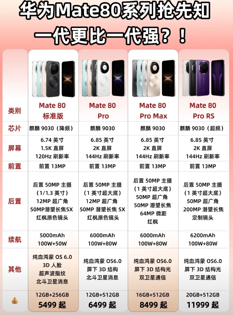 商务出行刚需!这款旗舰戳中差旅所有痛点 常年穿梭各地的差旅人,早已把华为Mate 80列入换机清单。这款尚未开售的旗舰,每一项配置都精准踩中出行刚需,堪称商务出行的得力伙伴。 解锁与办公体验高效省心。3D人脸解锁实现毫秒级响应,调取商务资料不用额外耽误时间。搭载的鸿蒙系统优化到位,处理文件、对接工作全程流畅顺滑,多任务切换也无卡顿,避免耽误行程中的紧急事务。 续航与补电适配差旅节奏。6000mAh 硅碳负极大电池续航扎实,满足全天高频次办公使用。搭配 100W 快充,机场候机半小时就能回血 85%,应急补电高效又省心。作为少数支持 80W无线快充的机型,酒店补电只需随手一放,不用随身携带一堆线材,减少出行负重。 通信功能更是差旅刚需亮点。它和荣耀Magic8是目前仅有的两款标准版标配卫星通信的旗舰,升级后的双向通话功能,哪怕到偏远地区也能稳定联系,彻底告别失联焦虑。独家支持实体双卡 + 双 eSIM 的四卡双待模式,工作与生活号码可分开管理,跨境出差还能同时接入境外本地 eSIM,不用携带多部手机,口袋直接 “减负”。