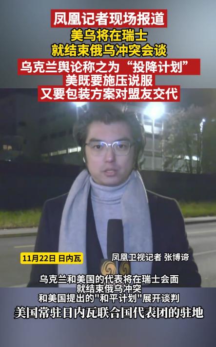 凤凰卫视挺牛啊,外派记者都已经抵达日内瓦了。 抵达日内瓦的记者张博嫡说,28点和平计划草案的磋商地点将在美国常驻日内瓦联合国代表团驻地进行,美国的一些代表已经先期抵达日内瓦了,谈判从今天开始,主要聚焦美方提出的28点和平计划。 关于28点和平计划,因为主要内容要求乌克兰在领土、军队规模、以及加入北约等关键问题上做出巨大让步,以至于在乌克兰国内被称为“投降计划”,欧洲多国反对美方提出的和平计划,不过同意在28点和平计划的基础上展开磋商。 根据报道,美国人预计会在日内瓦举行的会议上尽量说服乌克兰接受现实,希望对和平计划的表述方式进行微调,尽量包装成一份让乌克兰国内能够接受,又让欧洲国家可以接受的和平方案。意思是形变意不变。 川普面对媒体记者提问时表示,28点和平计划很可能不是最终的和平计划,但是,美国会致力于结束俄乌冲突,希望乌克兰接受和平计划,否则只能靠自己。 那么,28点和平计划会演变成什么样的方案呢?尤其在领土主权,军队规模,加入北约等问题上,乌克兰会做出让步吗?接下来,我们今天将持续关注来自日内瓦的信息。