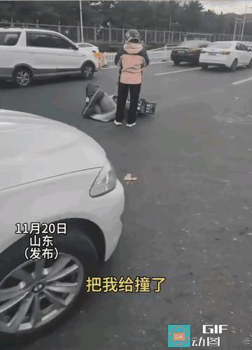 男子在斑马线上正常行走,结果被骑电动车的女子给撞了。 男子起初认为撞的不重,各走