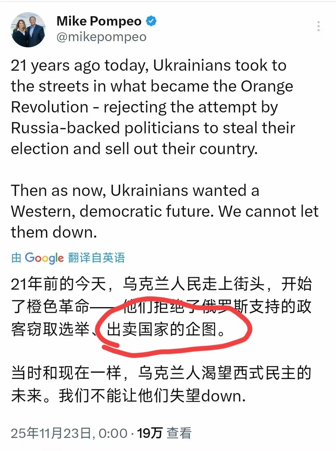 乌克兰要被迫接受丧权辱国的28条了, 蓬佩奥却跳出来说风凉话。 失去了土地,失去了数百万的人民,失去了矿产…… 不知道这些在蓬佩奥眼里算不算是出卖国家利益? 当然,出卖乌克兰的国家利益, 这又关美国蓬佩奥的什么事呢? 他无所谓。 死的是乌克兰人, 他无所谓。 如果没有21年前所谓的橙色革命, 乌克兰好好地做一个中立国, 不去讨好美国欧盟, 和中国搞好关系, 成为中国的海外粮仓, 中国在欧洲市场的桥头堡, 何至于此? 美国人基辛格早就告诉全世界, 做美国的盟友是致命的, 你们自己不信,怪得了谁? 一切都是你们自己的选择。 当然你们最大的错误选择就是放弃了核武器…… 想起2014年我们中国也有学者鼓吹要我们放弃核武器换取美国的谅解, 回过头来看, 是不是一身冷汗? 点右上角关注我,我们一起去看这个魔幻的世界