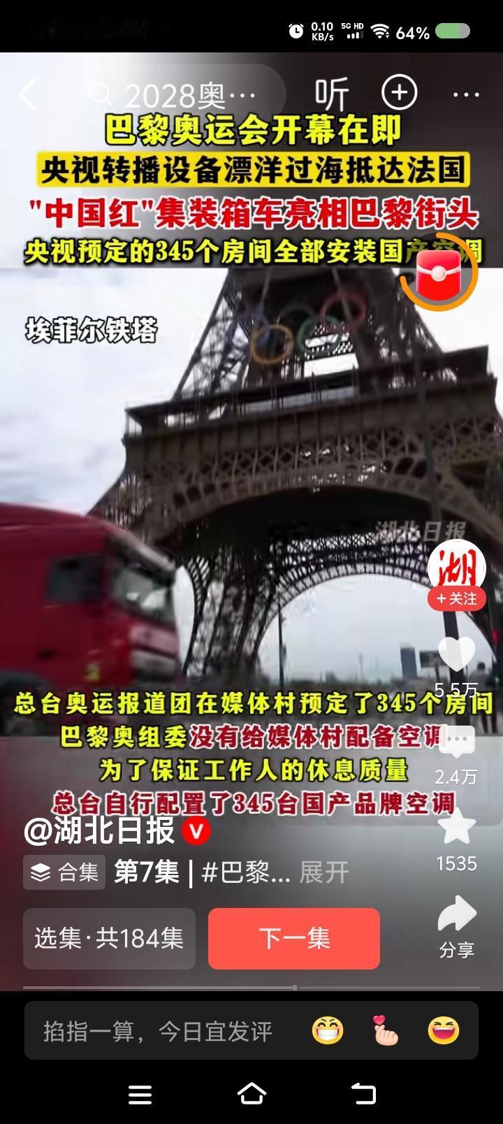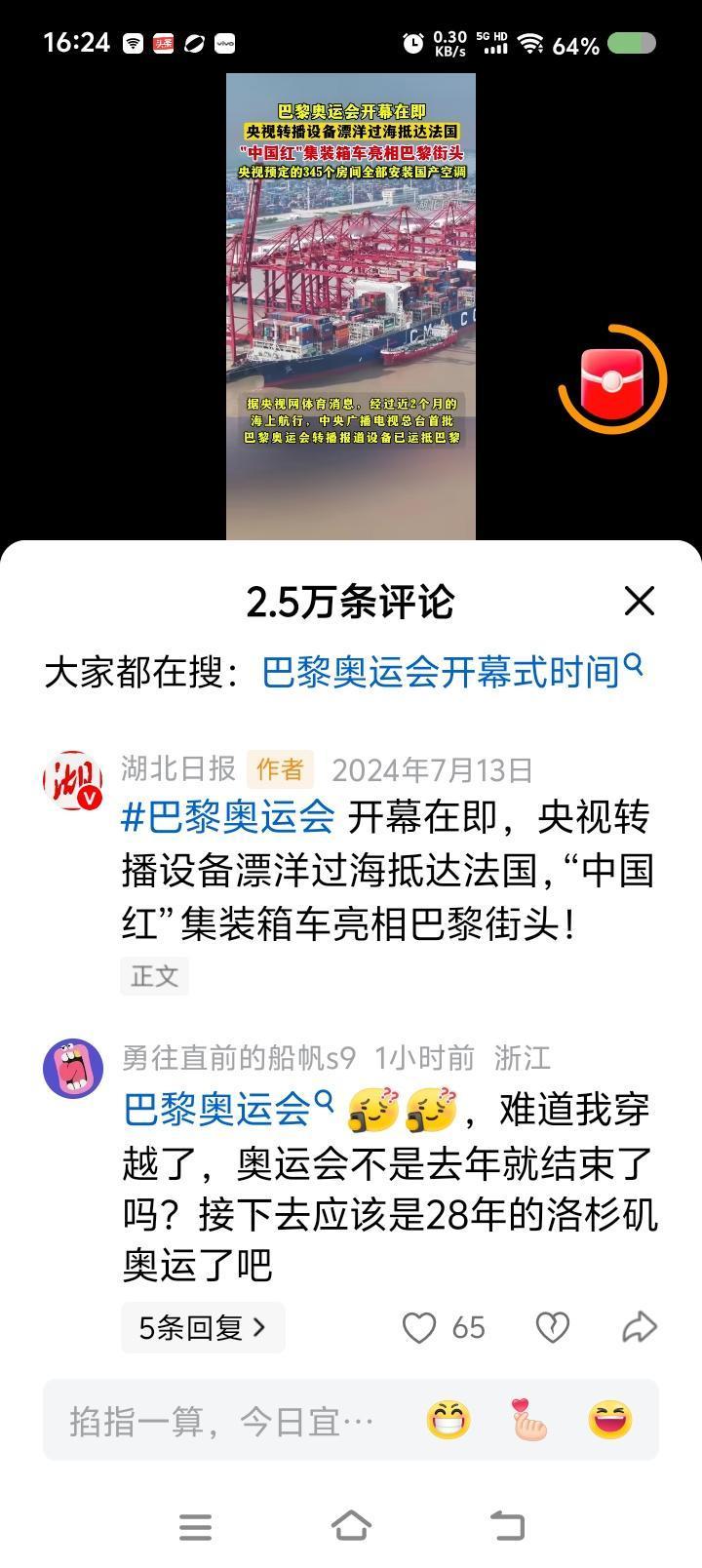 某日报,这什么事故?—— 头条上,某日报视频新闻:巴黎奥运会开幕在即,央视转播设备漂洋过海抵达…… 点评: 我在推算,2008年北京奥运,2012,2016,2020(2021),2024…… 这怎么? 点开一看,2024年的新闻! 岂有此理!!! 这是事故吧?
