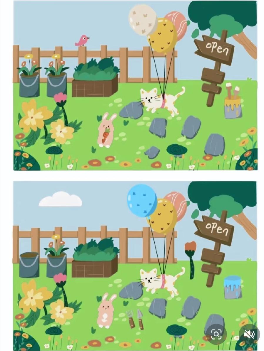眼尖的来!花园里的不同之处,据说10秒找全的都是细节控