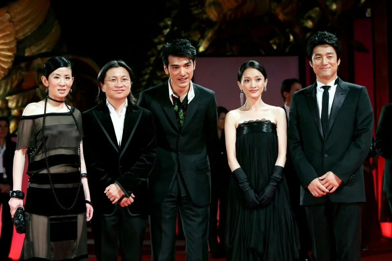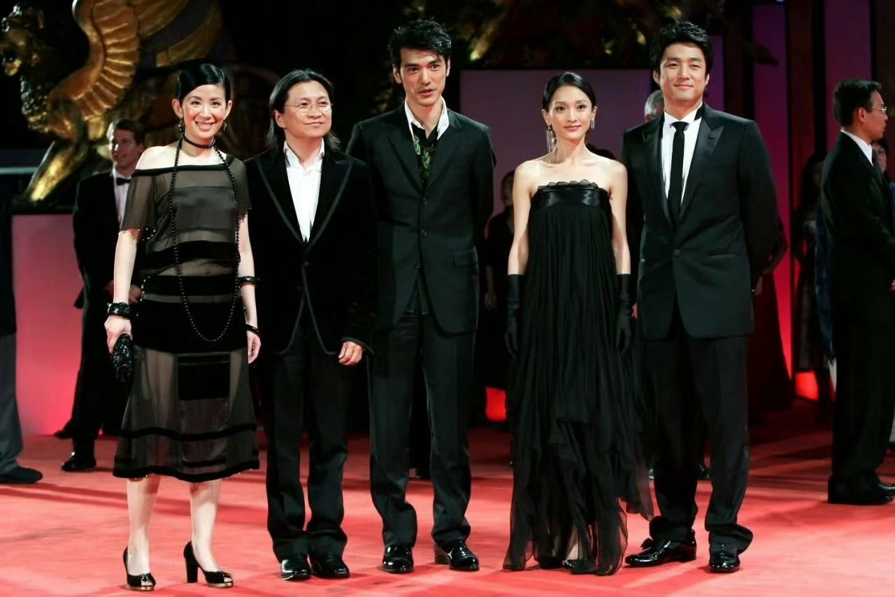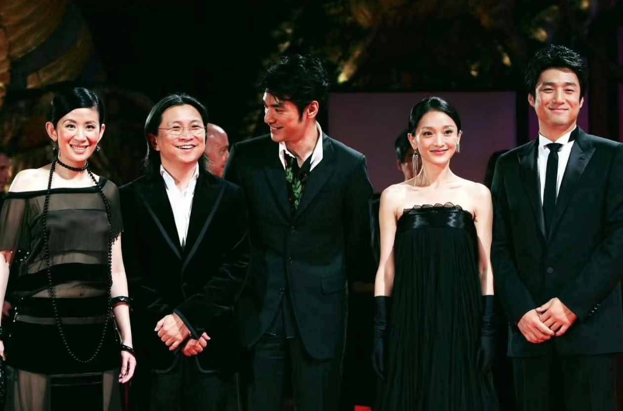 【来自投稿】2005年,第62届威尼斯电影节,《如果爱》主创团队陈可辛、吴君如夫妇、金城武、周迅、池珍熙出席红毯时的合影