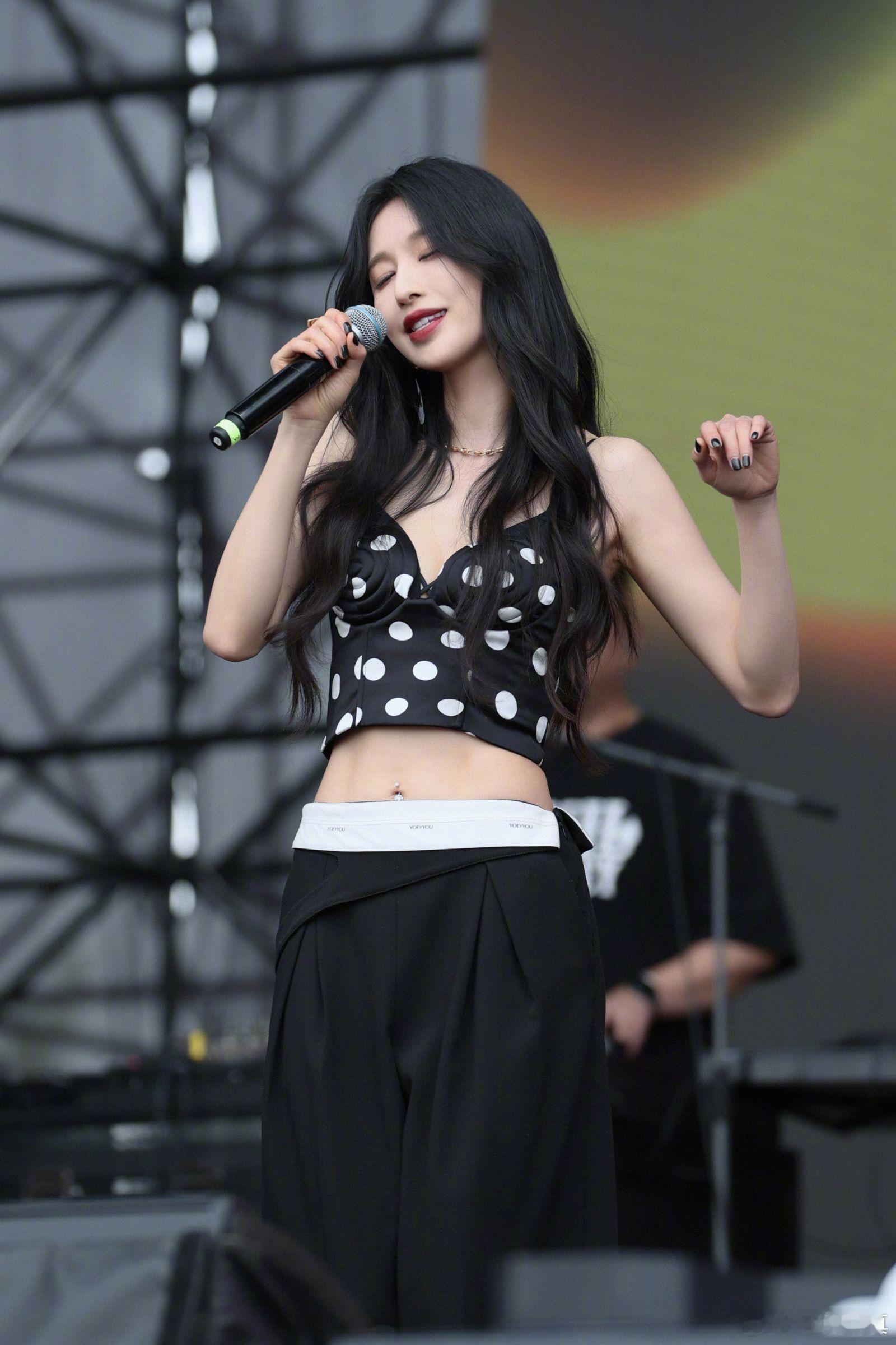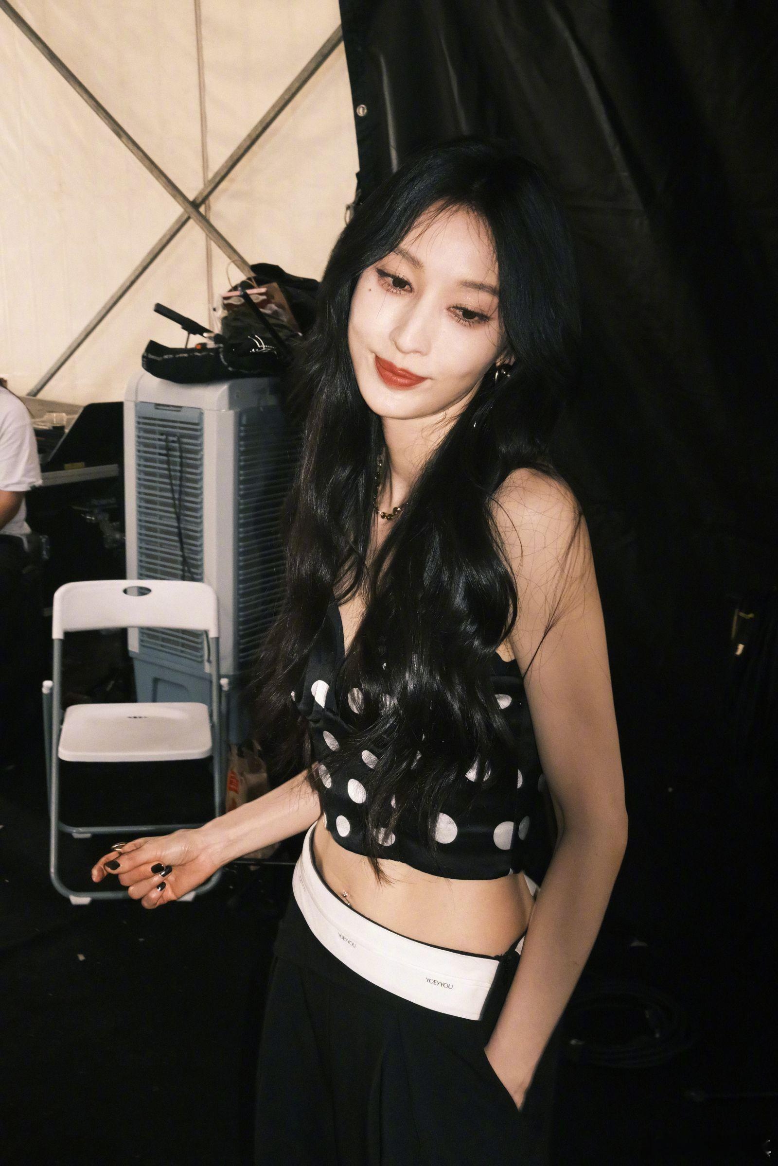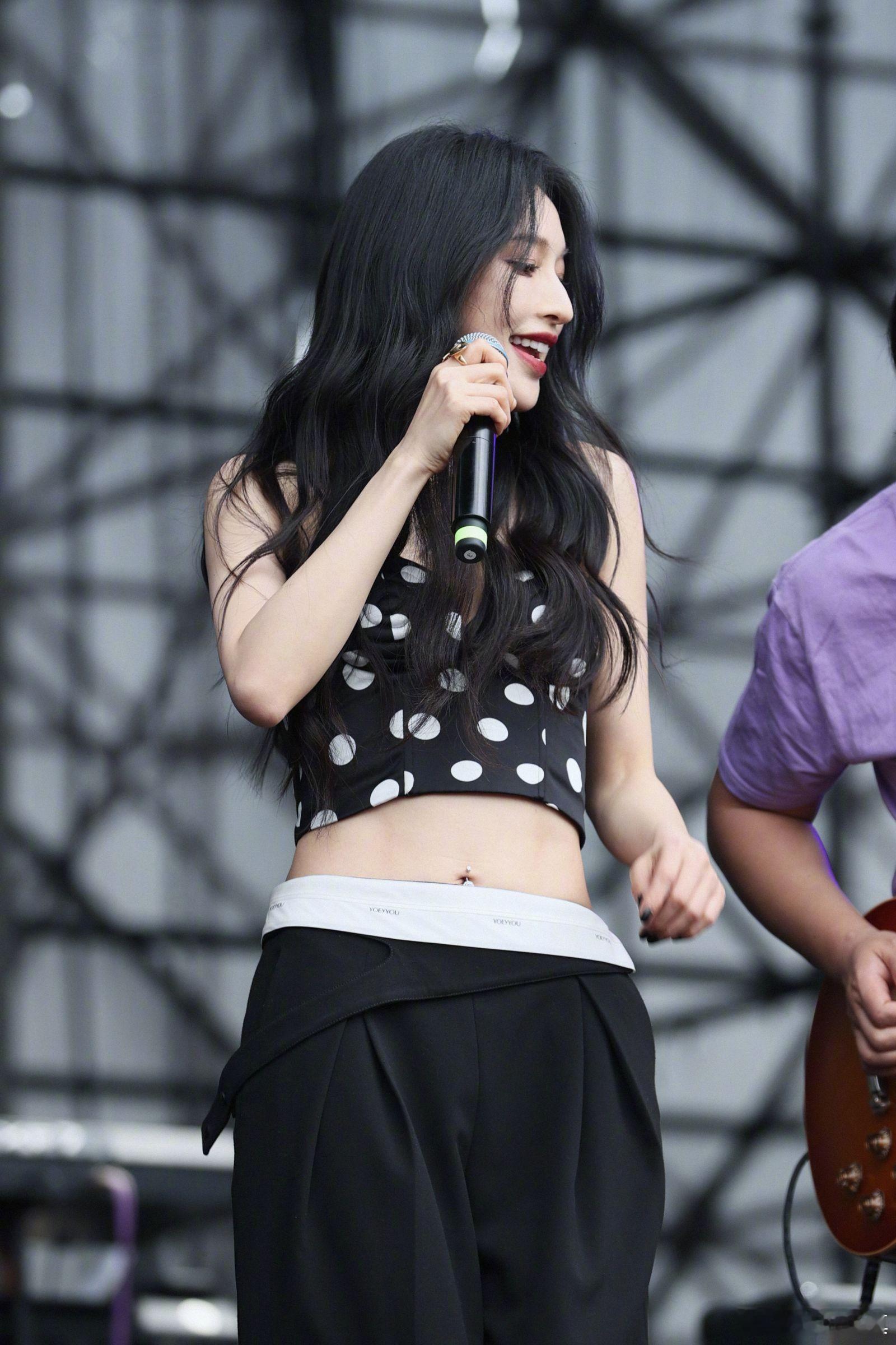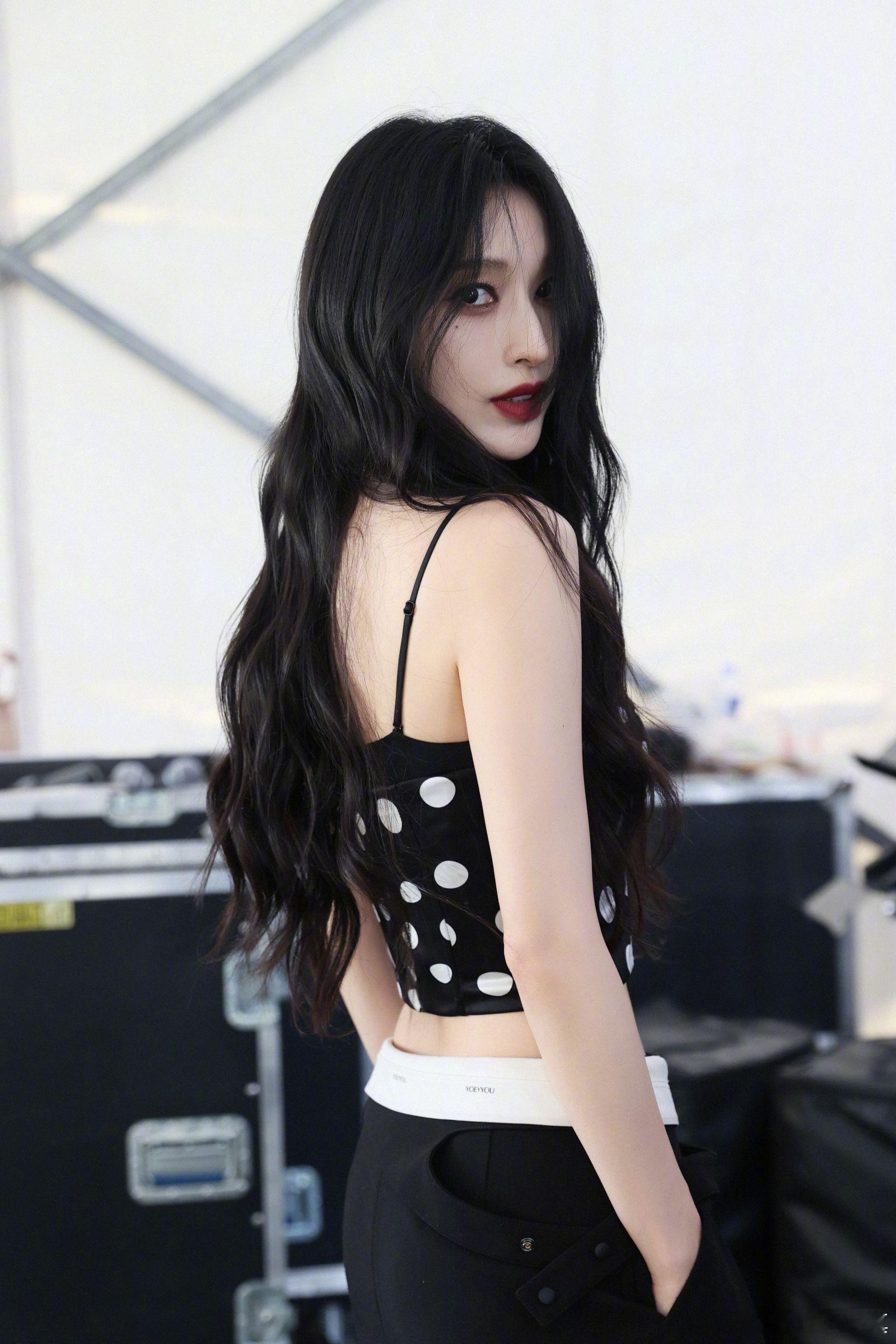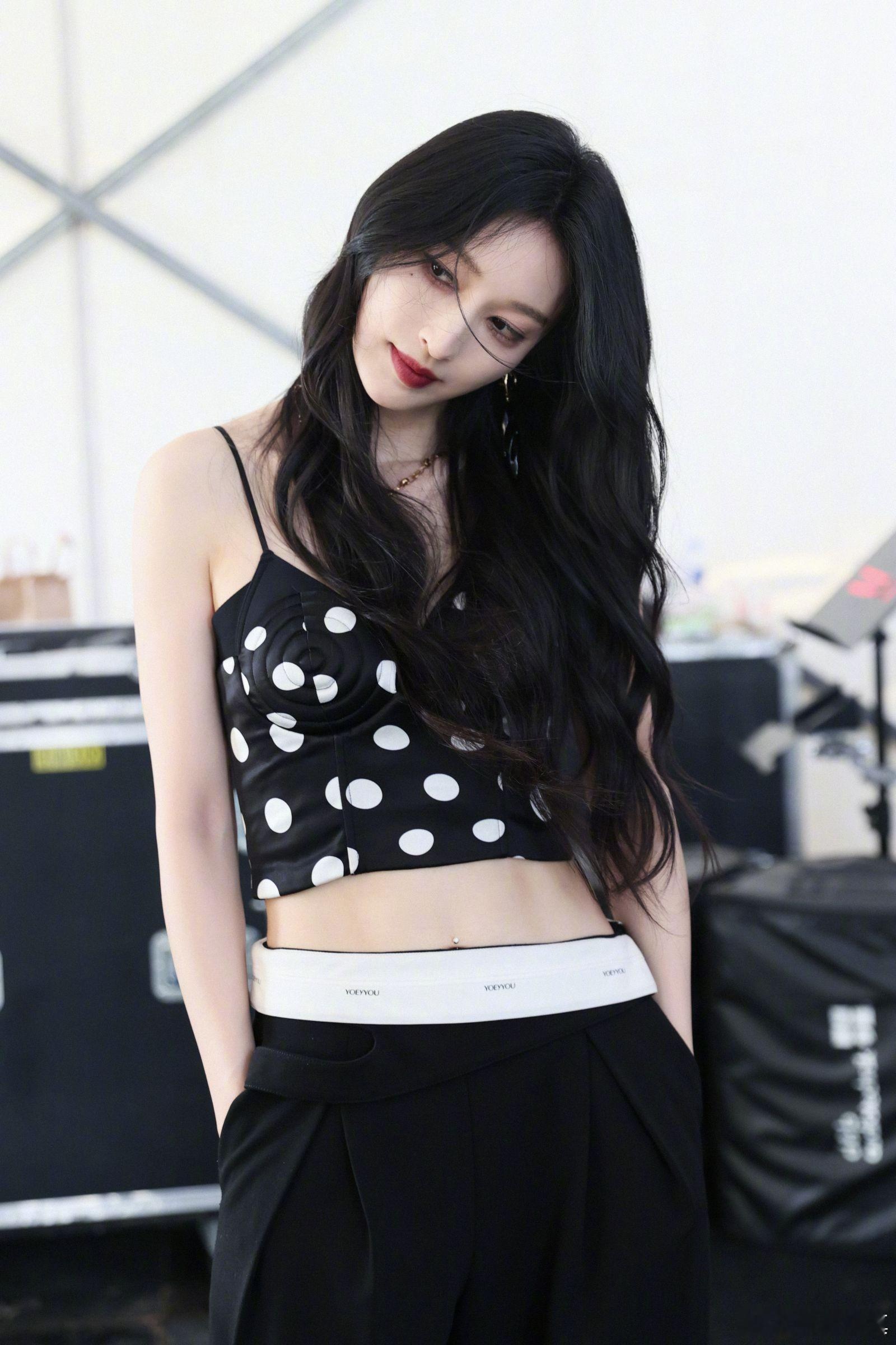 张俪 波点吊带浅露小蛮腰