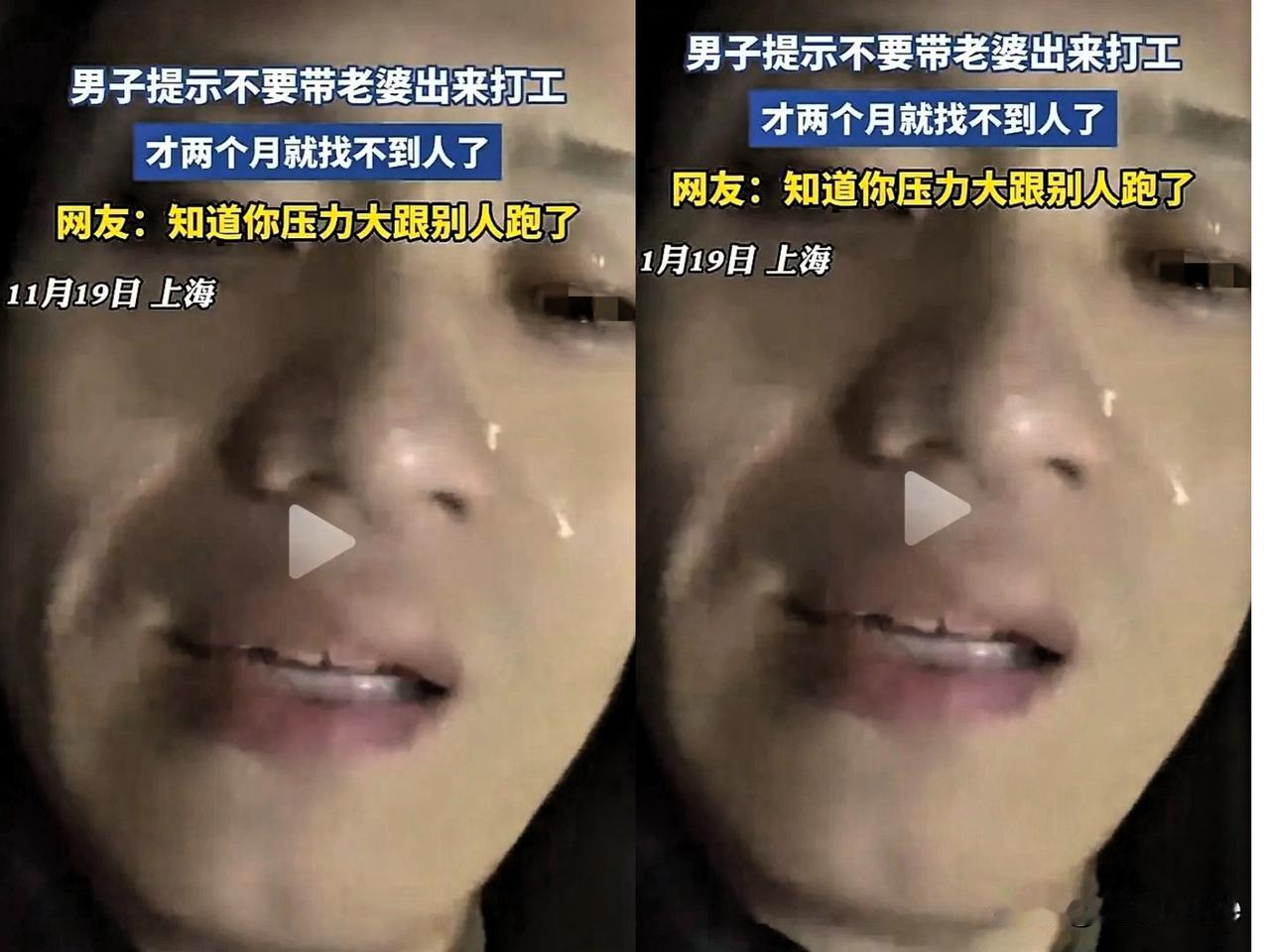 上海一男子泪流满面、痛哭流涕。 原来他带老家妻子到城里工厂打工,不到两个月,妻子
