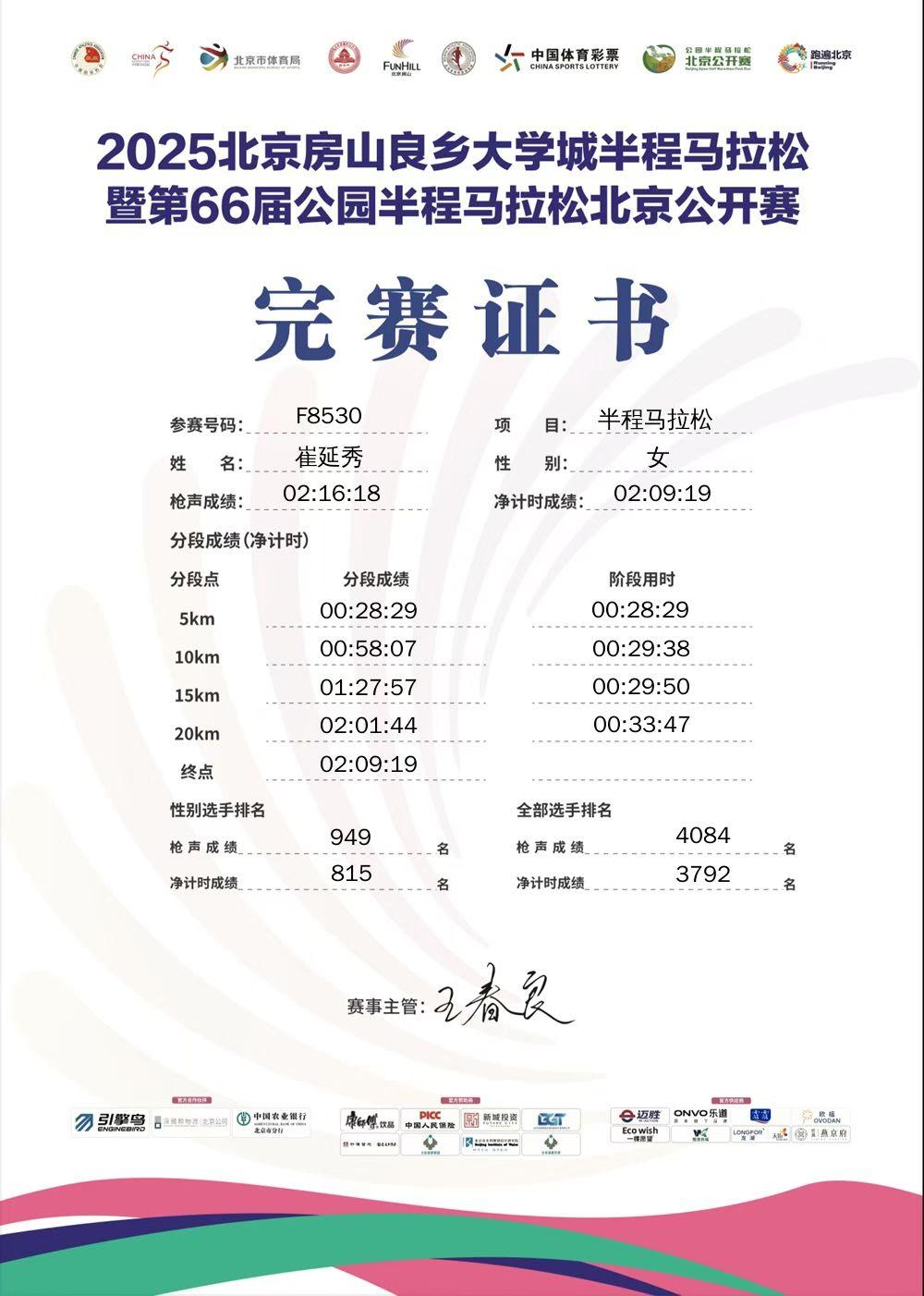 听说跑半马有新手福利期? 我信了 今年四次半马从 23131 21522 20919 到今天 20744 一次次提升,但感觉我的新手福利领差不多了,实在提高不了啦。[呲牙][呲牙][呲牙]
