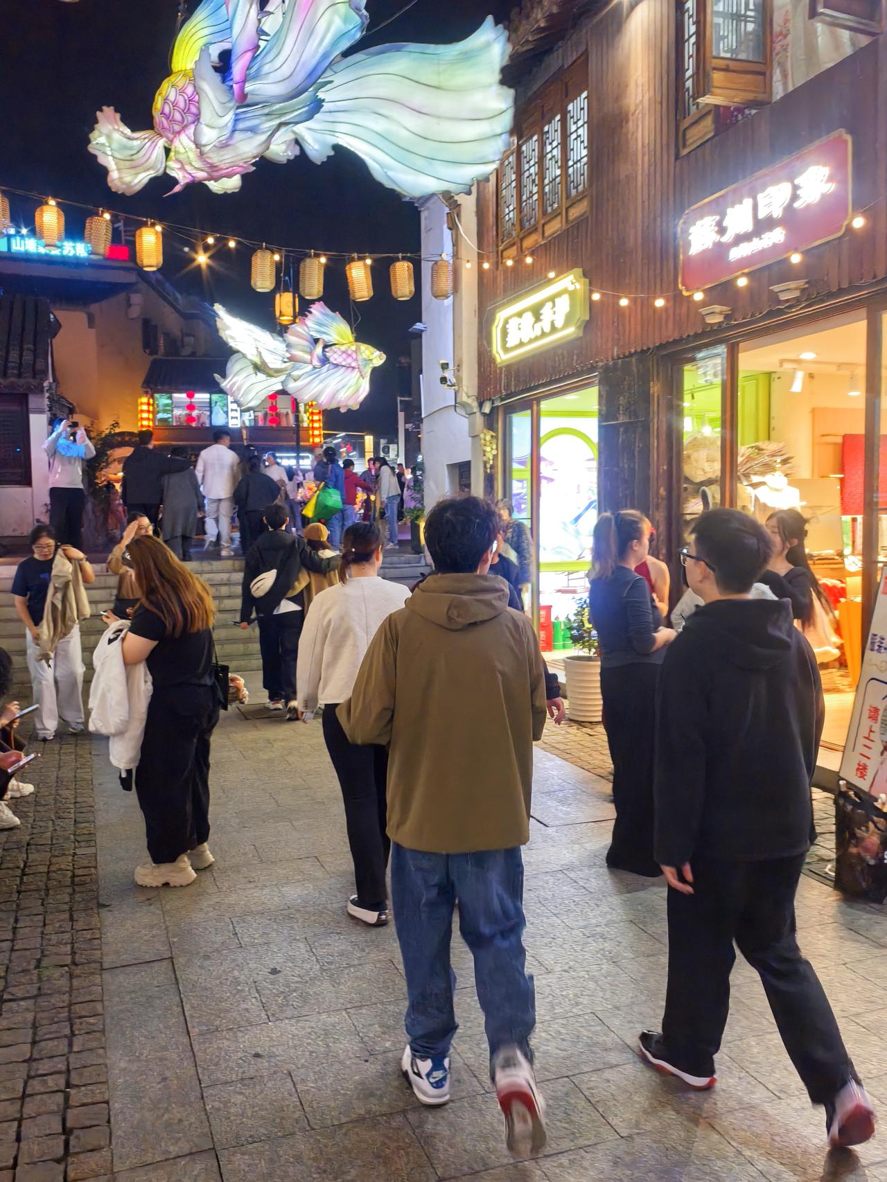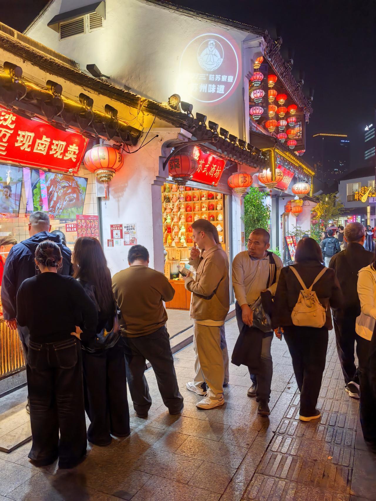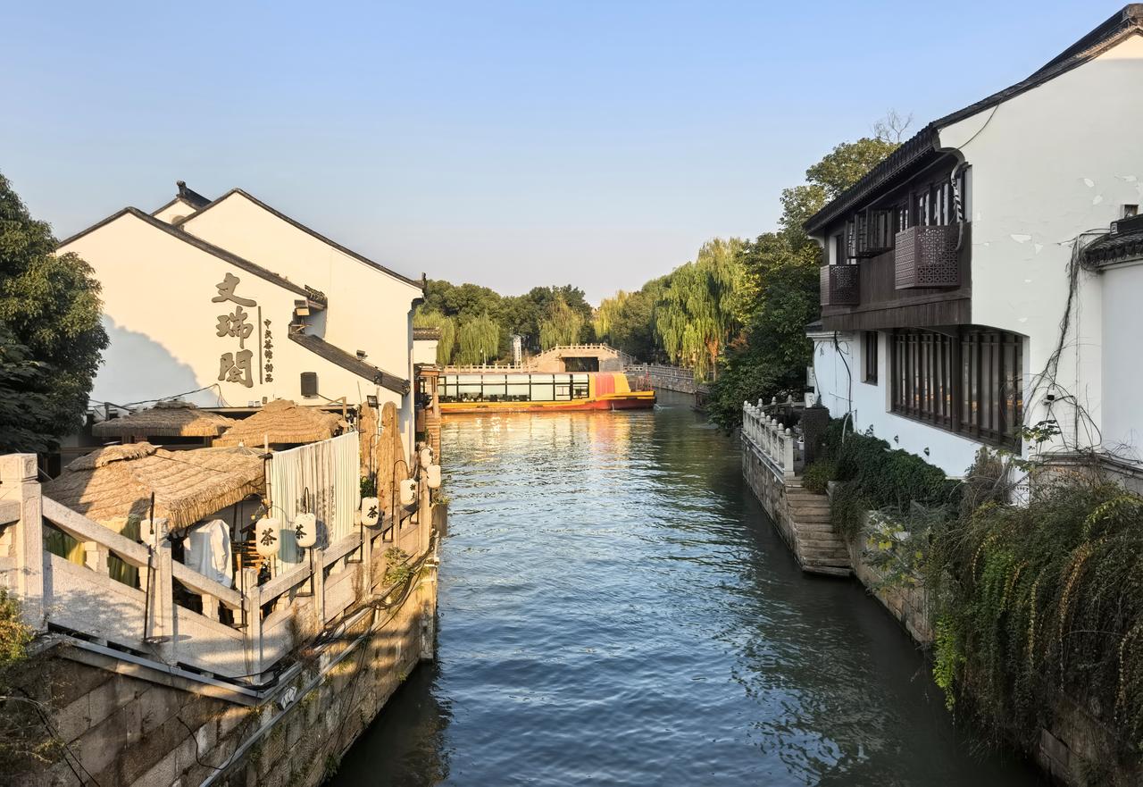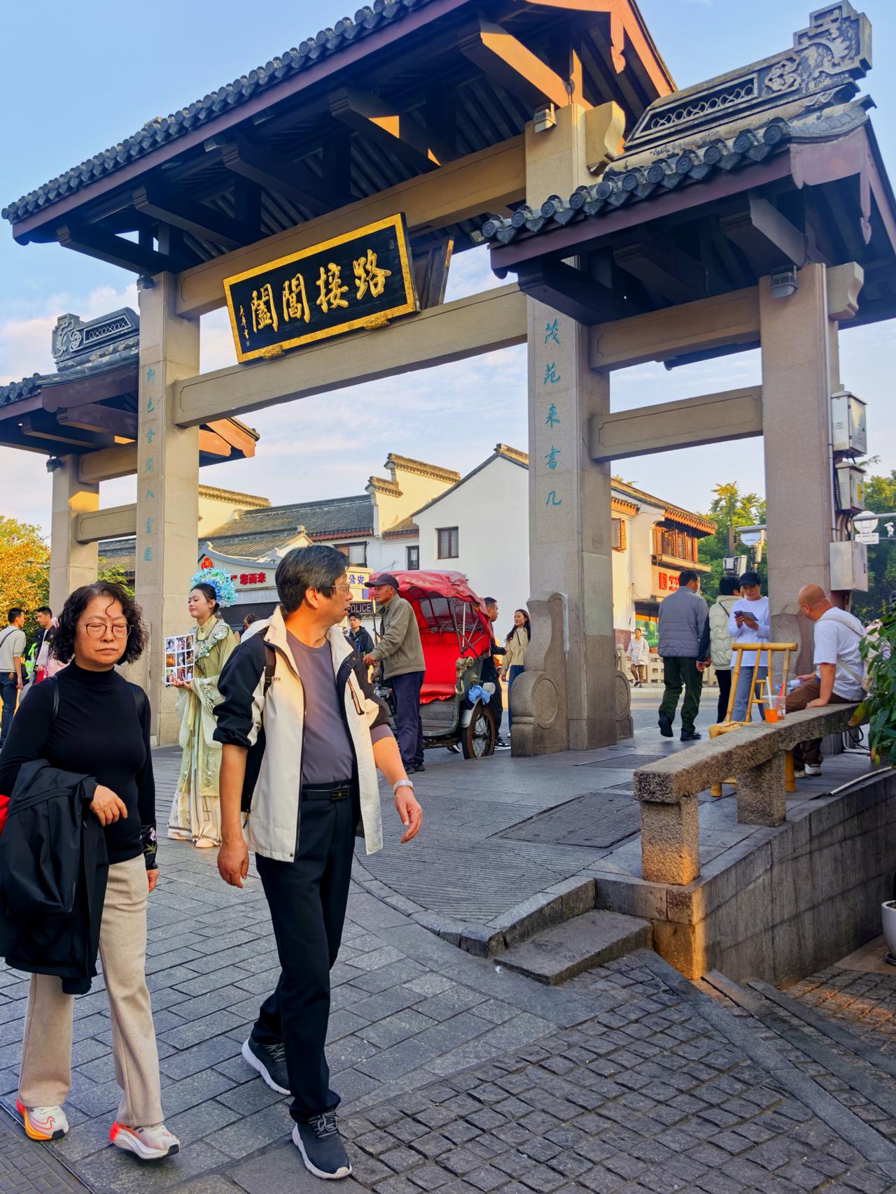 禅韵留痕处,运河引烟火——苏州寒山寺与阊门漫记。 秋光漫过姑苏城时,我先赴寒山寺之约,再乘运河游船寻阊门烟火,让千年禅意与市井温情在行程里缓缓衔接。如今访寒山寺交通甚便,地铁穿城、公交直达,却在游罢古寺后,偏选水路往阊门去——毕竟江南的韵味,总需借一汪碧波慢慢铺展。 待逛遍寒山寺的庭院角落,看够黄墙映秋景,才循着指引往寺边码头去,准备乘游船顺运河一路赶赴目前苏州仅存的三座老城门之一的阊门。这也是我苏州之行的第六站。 登船离岸,运河碧波载着船身缓缓前行,两岸风光如流动的水墨铺展:依依垂柳轻拂水面,白墙黛瓦的民居枕水而居,窗棂间偶见蓝印花布轻晃,风里混着桂香与水汽的清润。画舫搅碎天光云影,桥洞悠悠映着船身,水鸟掠翅而过,将江南的温婉藏进每一处景致里。行至将近终点,便见阊门的巍峨城楼在绿荫中渐显,城楼正对着的便是护城河、山塘河、运河交汇之处,白居易码头静静卧在岸边,正等游船靠岸。 踏上阊门的青石板路,《红楼梦》中“最是红尘中一二等富贵风流之地”的余韵扑面而来。斑驳城墙刻满岁月痕迹,城楼巍峨依旧,城门内街巷纵横,老店铺的幌子在风中摇曳,苏式糕点的甜香与评弹的软糯唱腔从窗内溢出。街巷里人群川流不息,各种美食的香味开始放肆地侵扰每一个路过的人。来这里拍照打卡的游客很多,偶有身着古装的小姐姐们三五成群飘过,让人不禁感慨年轻真的很美好。穿行在城内城外,脚下青石板温润如玉,老屋墙上藤蔓缠绕,时光仿佛在这里放慢了脚步,将历史与日常揉合得恰到好处。 暮色渐浓时,站在阊门码头回望,运河波光粼粼,寒山寺的钟声似仍在耳畔回响,与街巷里的人声、笑声交织成韵。这场旅程,先以古寺禅意洗去尘嚣,再借运河清波载来烟火,恰是苏州最动人的模样——于古寺深院藏诗意,于寻常街巷享烟火,让每一位到访者,都能在行程流转中,遇见心中的江南。原创作品 随手拍苏州的街头巷尾 游览苏州阊门 追寻苏州的烟火气