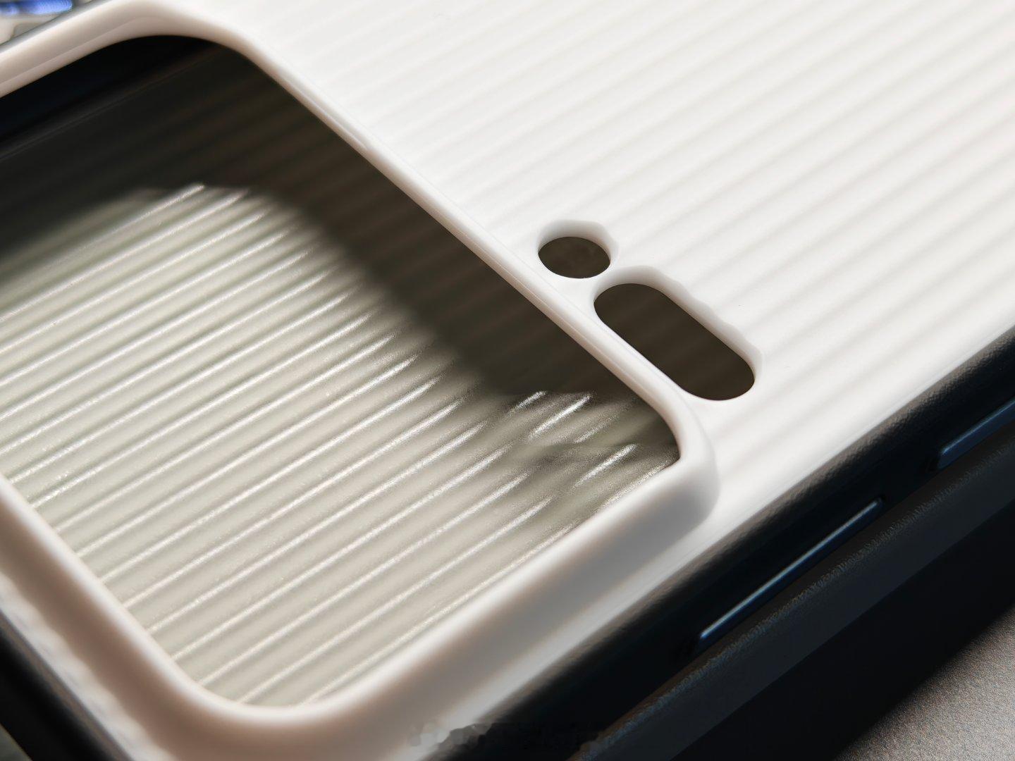 为小米17 Pro Max打造的这款保护壳,属于旗舰机型的“功能美学”配件——既延续了品牌标志性的光栅系列设计语言,又针对小米17 Pro Max的大屏、高性能特性做了适配优化。其核心设计亮点在于: 采用PC硬背板+软边框的“二合一结构”,背板表面覆盖微哑光瓦楞纹理,边框则是亲肤涂层的高弹性材质,以“低调高级感”为主调,配色(如参考图中的浅杏色和黑白)适配小米17 Pro Max的机身色系,避免过度装饰;是一款兼顾外观和保护性能的全能型保护壳。开口上,充电口(Type-C)、扬声器、麦克风的开孔边缘无毛刺,与小米17 Pro Max的机身接口完全对齐,充电线插拔、扬声器音量均不受影响;侧边电源键/音量键采用独立包裹式按键,键程约0.8mm,按压反馈清晰(接近裸机手感),且表面做了防滑纹理处理;镜头区域高出镜片1mm以上,配合PC背板的刚性,可避免平放时镜头直接接触桌面,同时开孔完全覆盖小米17 Pro Max的多摄模组,无遮挡。瓦楞纹的立体起伏(约0.3mm) 既提升了握持摩擦力,又减少了指纹残留(实测日常使用4小时后,仅在边缘出现轻微油痕,可通过纸巾擦拭清除);边框的亲肤涂层(类似液态硅胶的细腻度),长时间握持无硌手或粘毛问题,且冬季户外低温环境下不会变硬;我用上这个手机壳后,我的小米17 Pro Max已经摔3次,机身无划痕、功能正常,手机壳也没有磕碰变形。背板应该是经过硬化处理,使用钥匙轻划无明显痕迹,长期使用后仅在边缘出现轻微磨损。同时,边框与机身的缝隙小于0.1mm,可阻挡灰尘、细小颗粒进入。最后总结一下,瓦楞纹兼顾美学与防滑,亲肤边框提升长时间握持舒适度,推荐小米17 Pro Max用户中,追求“防护+手感+功能”均衡、预算充足的商务人士/数码爱好者。
