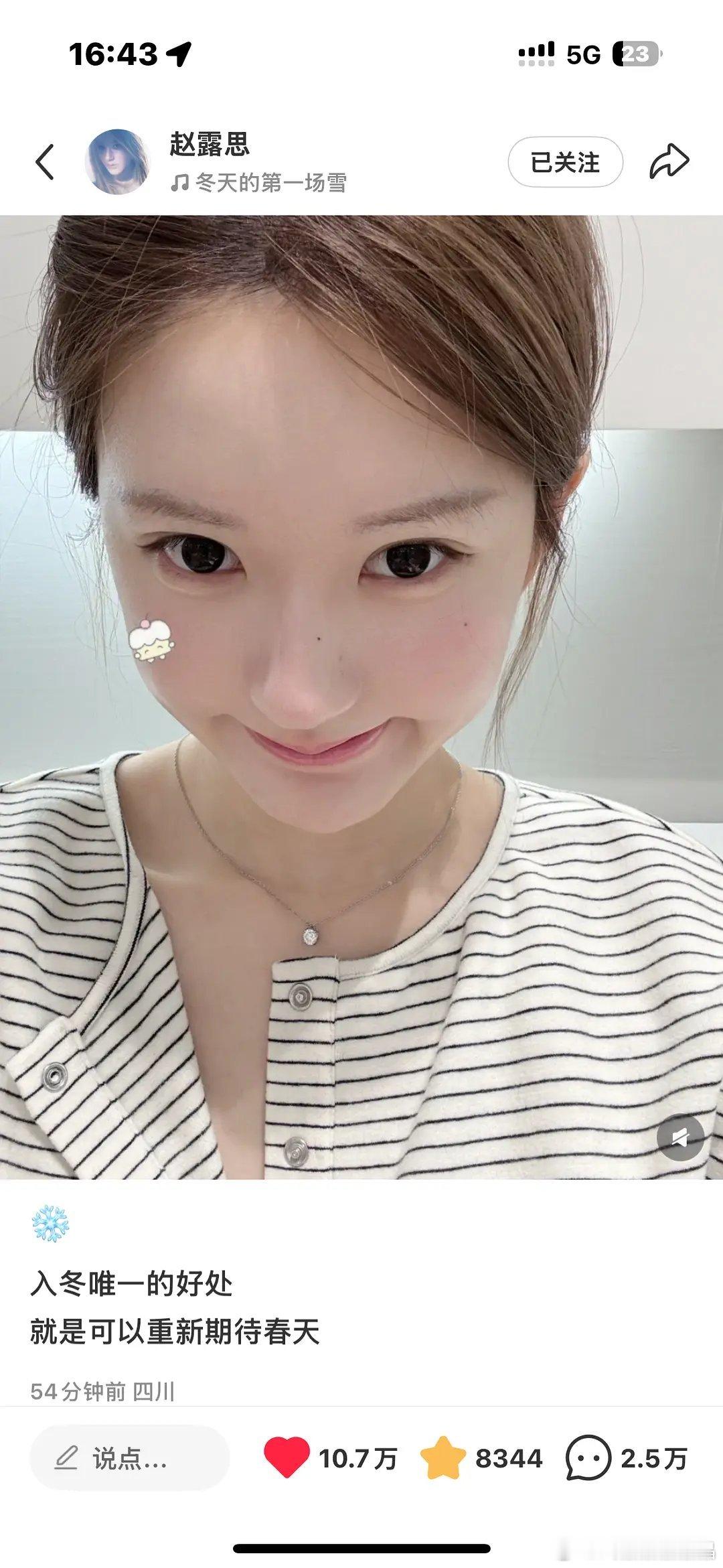 赵露思的小红薯🍠随便发一张照片54分钟10.7w点赞 ,数据太顶了。