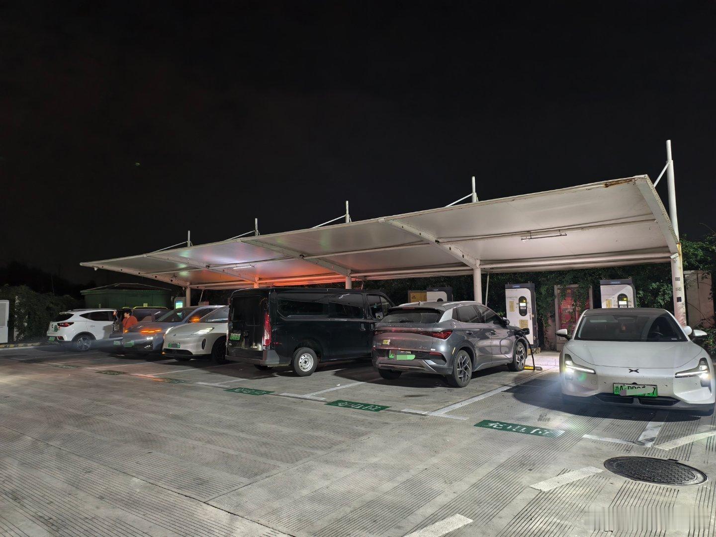 回家路上电量有点紧张,没做啥规划,看到高速沿途有服务区就拐进去了,寻思上个厕所顺便奶一口。结果到了发现不仅充电桩全满,还有排队的,还有个一个车占 2 个位置的垃圾。