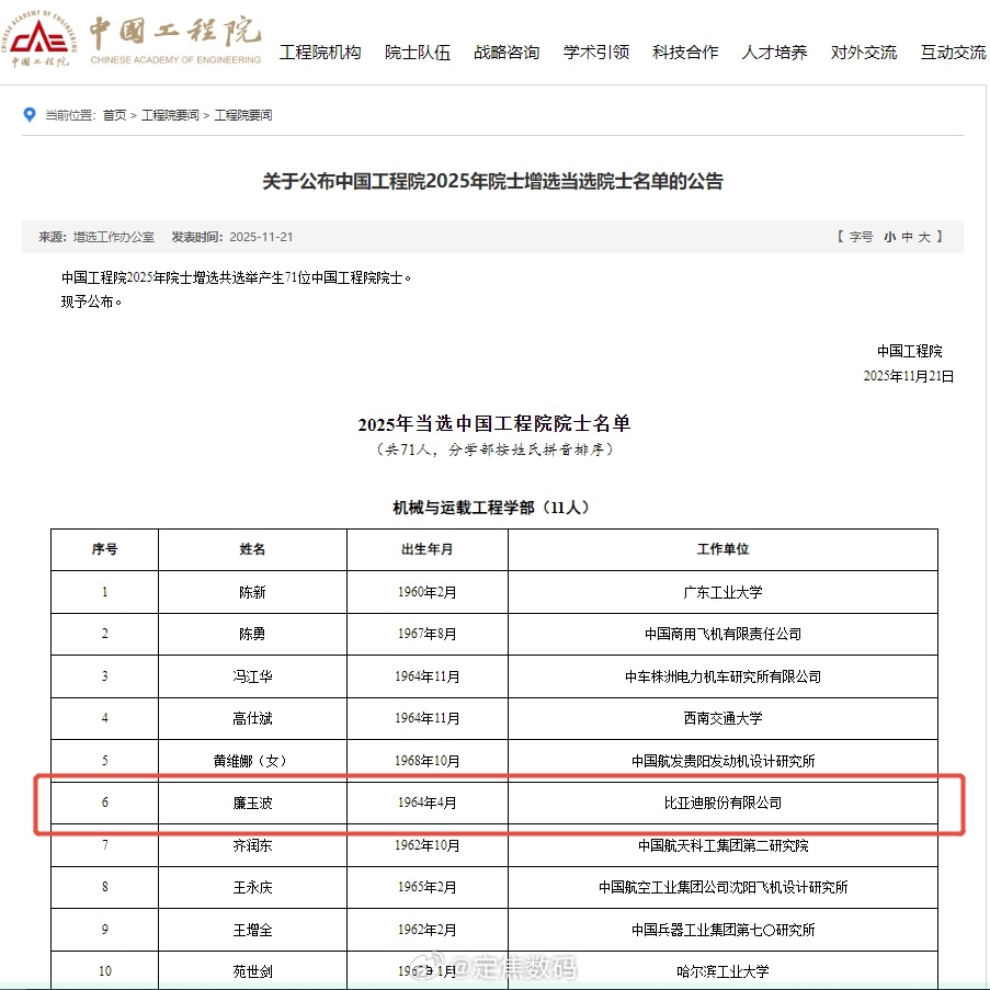 之前一直觉得,比亚迪还欠一个院士。好,话中了,廉玉波当选中国工程院院士... 他本人,就是带领的技术团队主导开发出DMi的大佬。还有一个大贡献,他提出了解耦式插电混合动力技术体系,以技立身荣膺院士。