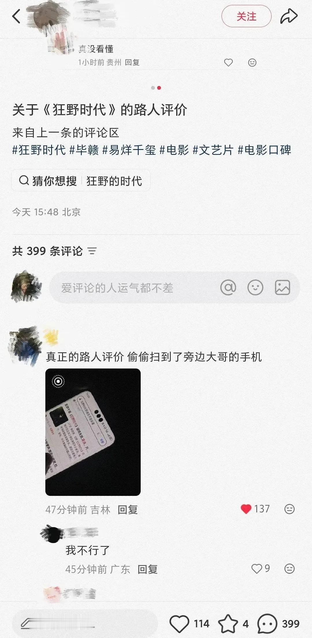 《狂野时代》开分6.5,我不奇怪 电影内容让大家昏昏欲睡,我也不奇怪 万万没想到,电影内容直让观众怀疑易烊千玺性取向了,因为里面竟然是两个男的对易烊千玺抱来抱去。 甚至搜索词条关联的还是,狂野时代导演是不是热爱云南美食 这部电影投资2亿,粉丝冲了1亿票房,目前退票率特别高,估计最终票房很低迷,现在猫眼预测是2亿,估计可能会更低。 一般电影投资2亿,至少需要6亿才能回本,需要成本的三到四倍。