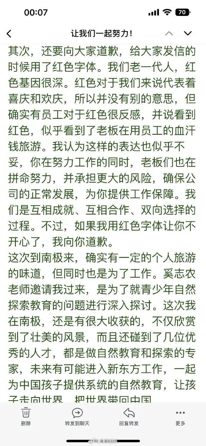 俞敏洪称,很多老师熬夜备课,“我相信我熬夜的时间一定不比你少,只不过我熬夜的工作内容和你有所不同”。这个事不是已以消停了吗?怎么又写信了?俞老师不仅懂英语,还懂流量的。