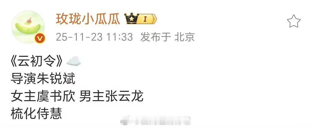 《云初令》的🍉:女主虞书欣、男主张云龙,导演朱锐斌。 我一想到虞书欣张口夹子音演恶女就觉得好笑哈哈哈哈哈哈哈 自从网传虞书欣要演云初令后,男主传到哪家哪家拒🫓现在看还是张云龙头铁哈哈哈 这要是想营销cp咋整啊?张云龙马上就能得更多的路人缘了~以我多年的经验,每次传瓜多半是真的了!感觉这种题材都快烂大街了