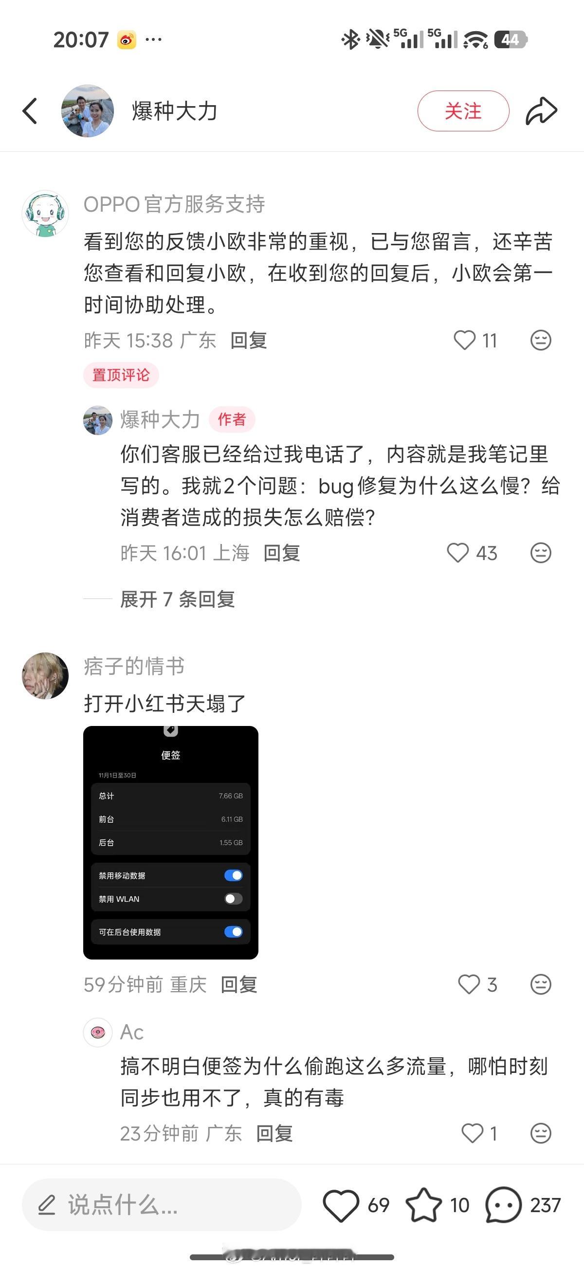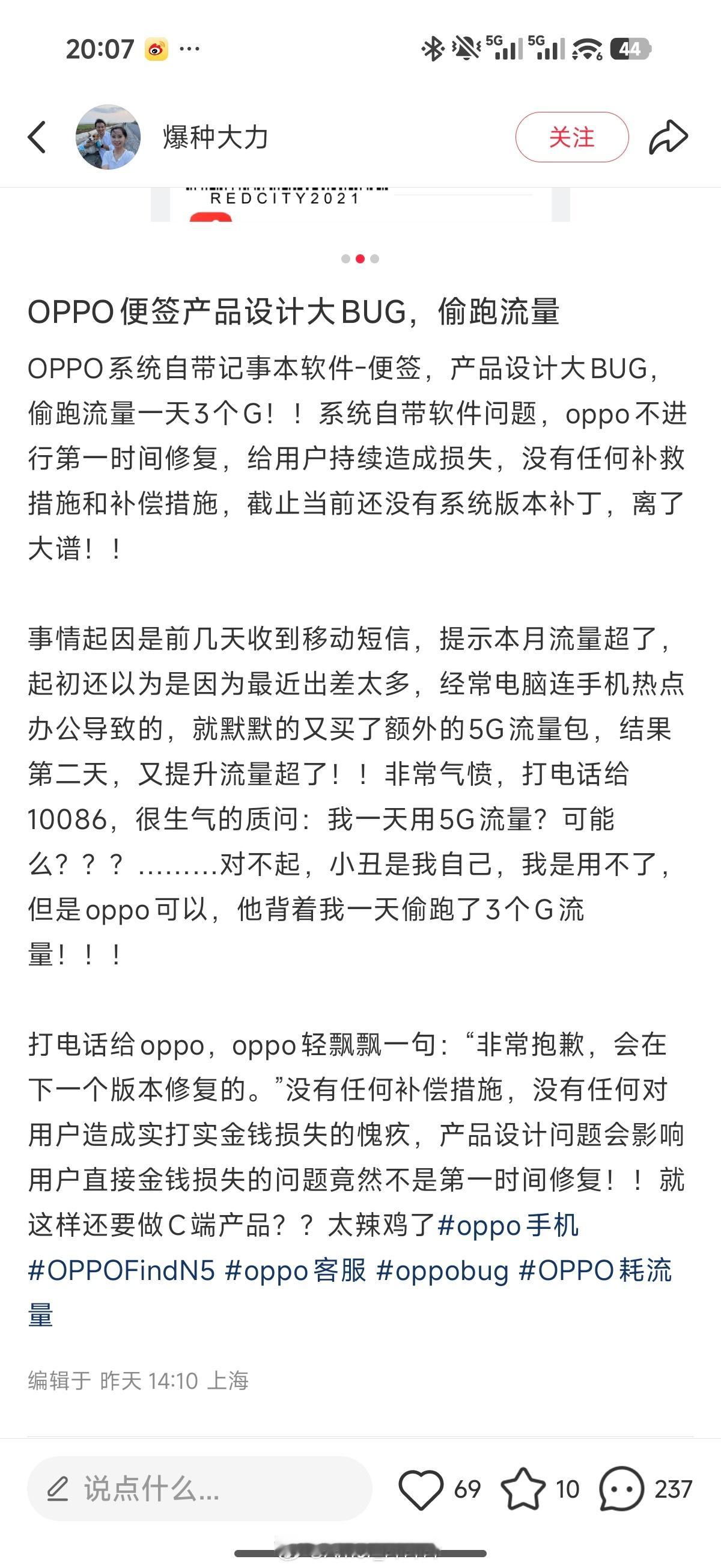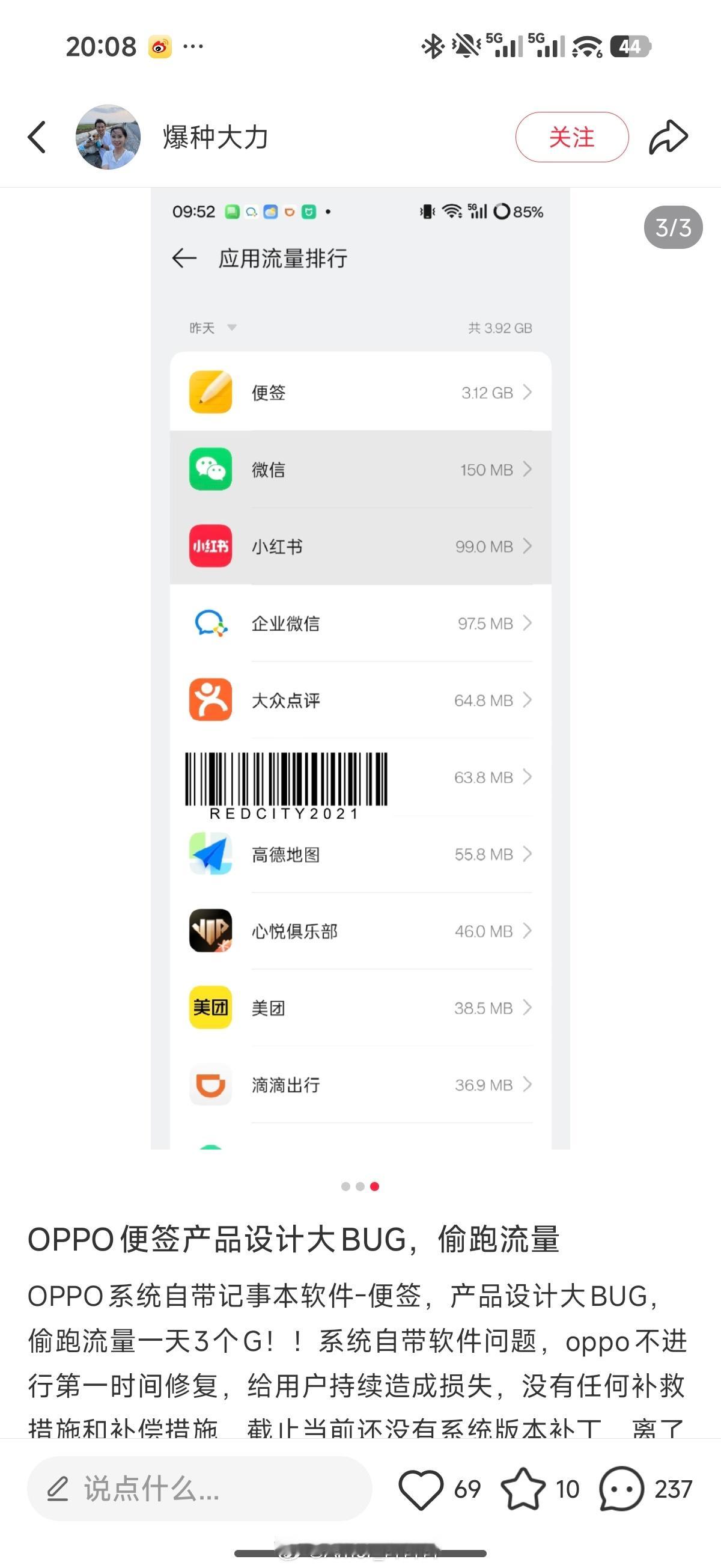 OPPO这bug也是绝了,系统便签竟然能偷跑流量,跑的都比通讯软件多了……