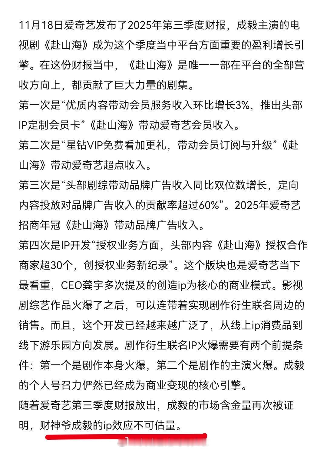 🥝发文:成毅的《赴山海》是现象级ip,招商爆款力作,男主财神爷