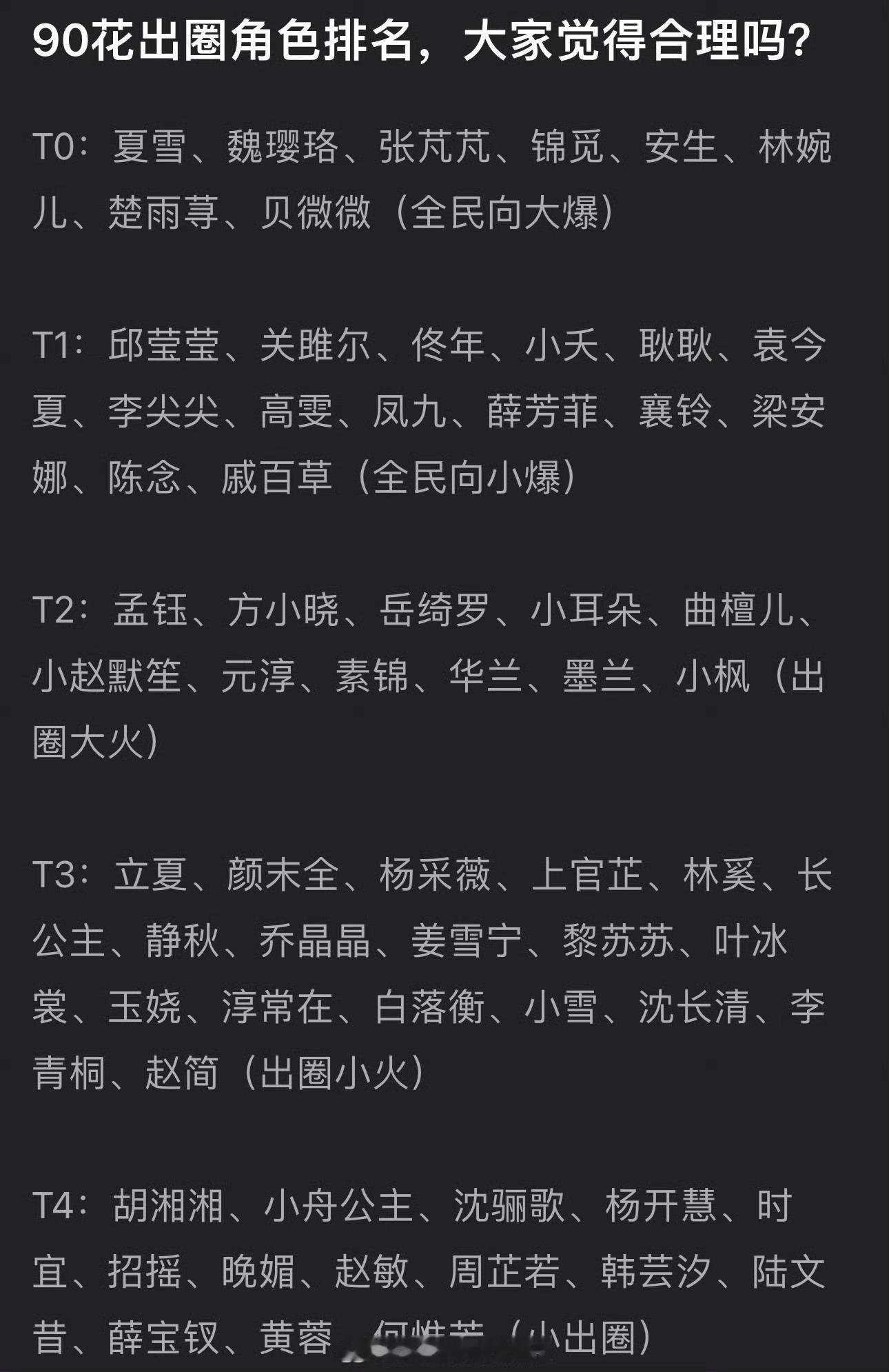 网友总结90花出圈角色排名,这能看出谁更扛剧吧