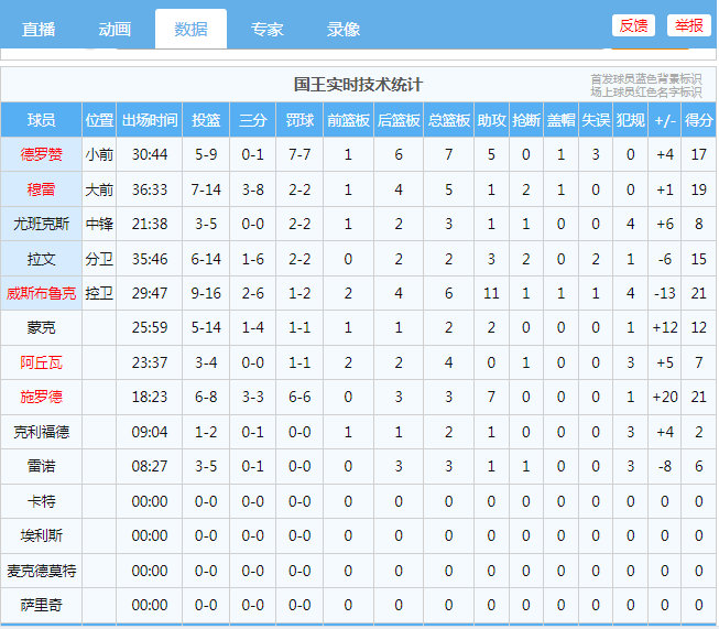 用黑詹姆斯的标准,今天国王打的最差的球员是威少!因为正负值最低!