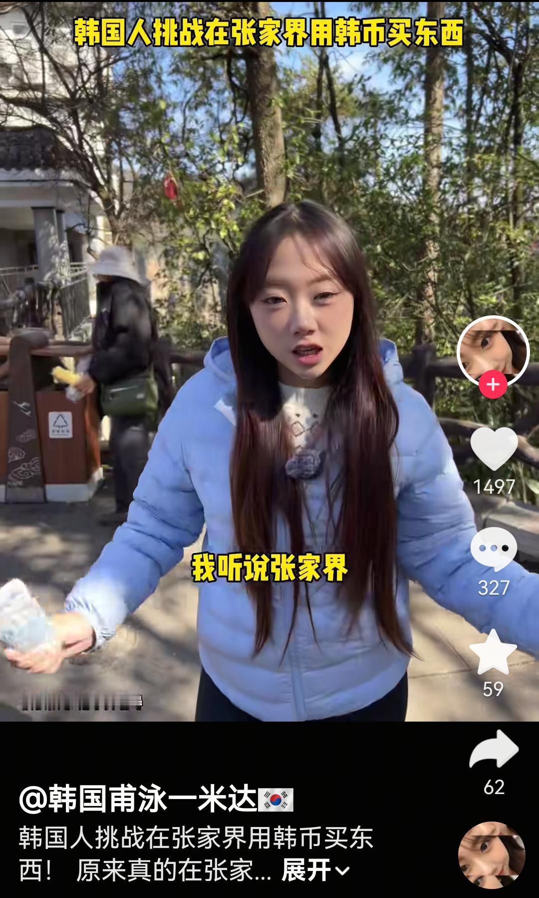 看到一位韩国女博主在张家界用韩币购物体验视频,不得不说,张家界还真是韩国人旅游体