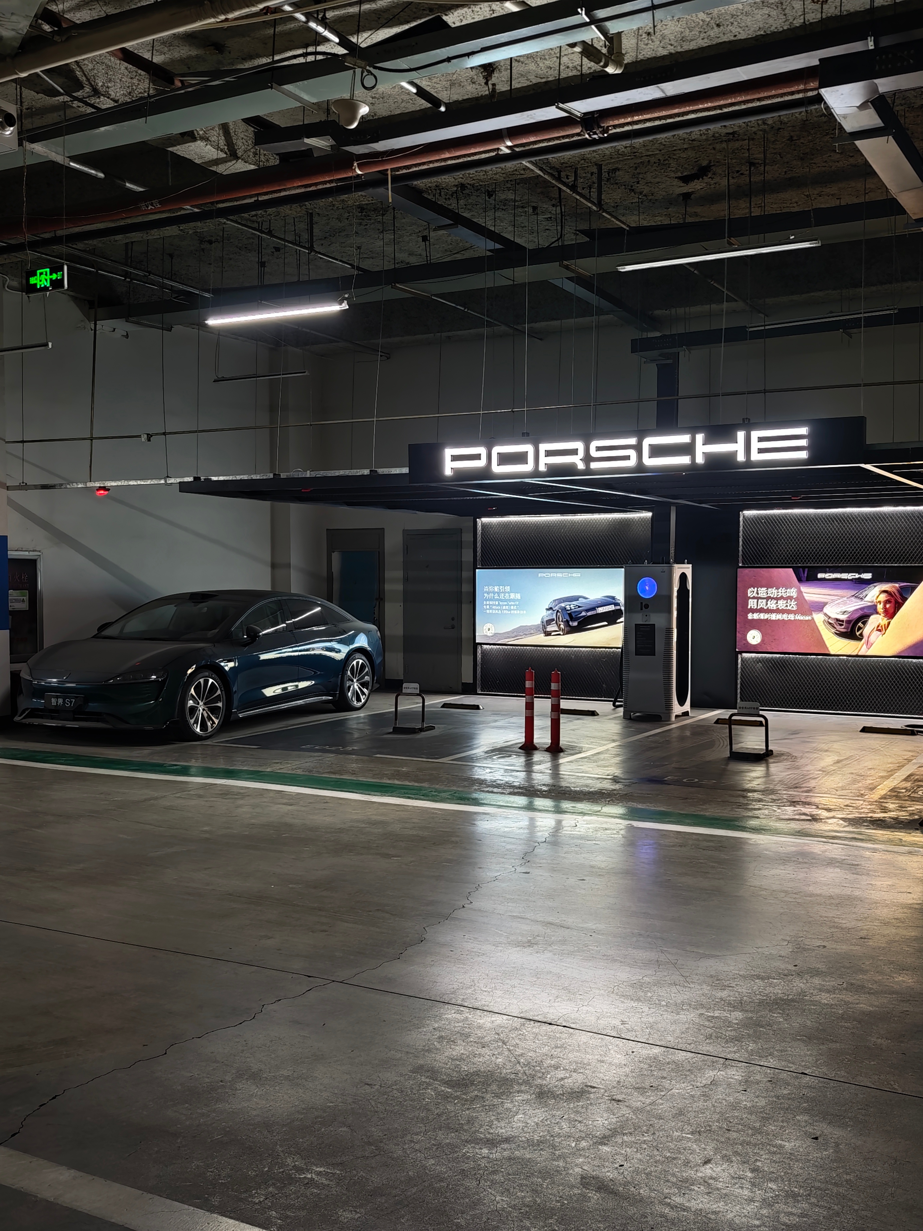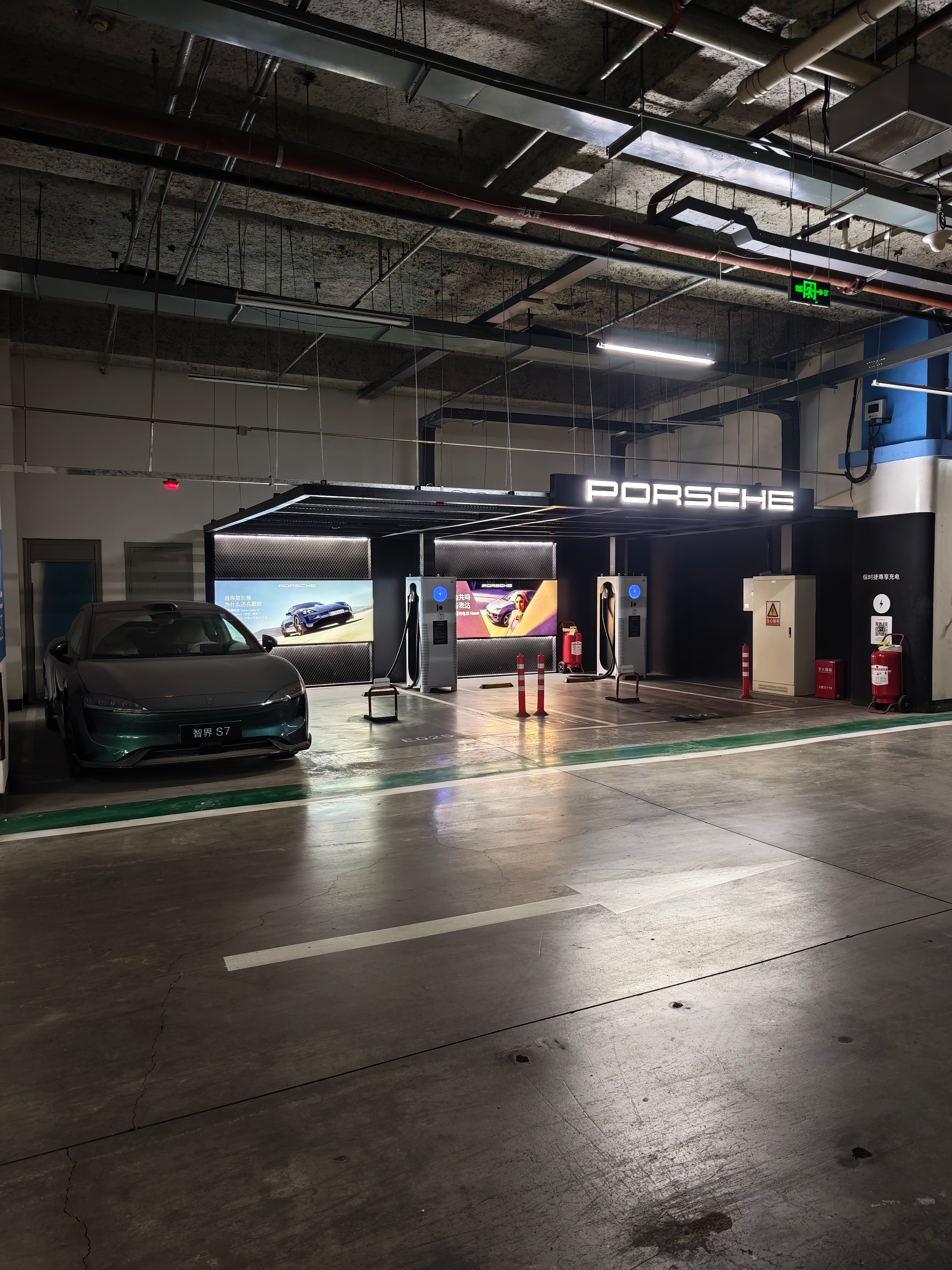 在保时捷充电站旁边停放的智界S7不太合理但又有点合理