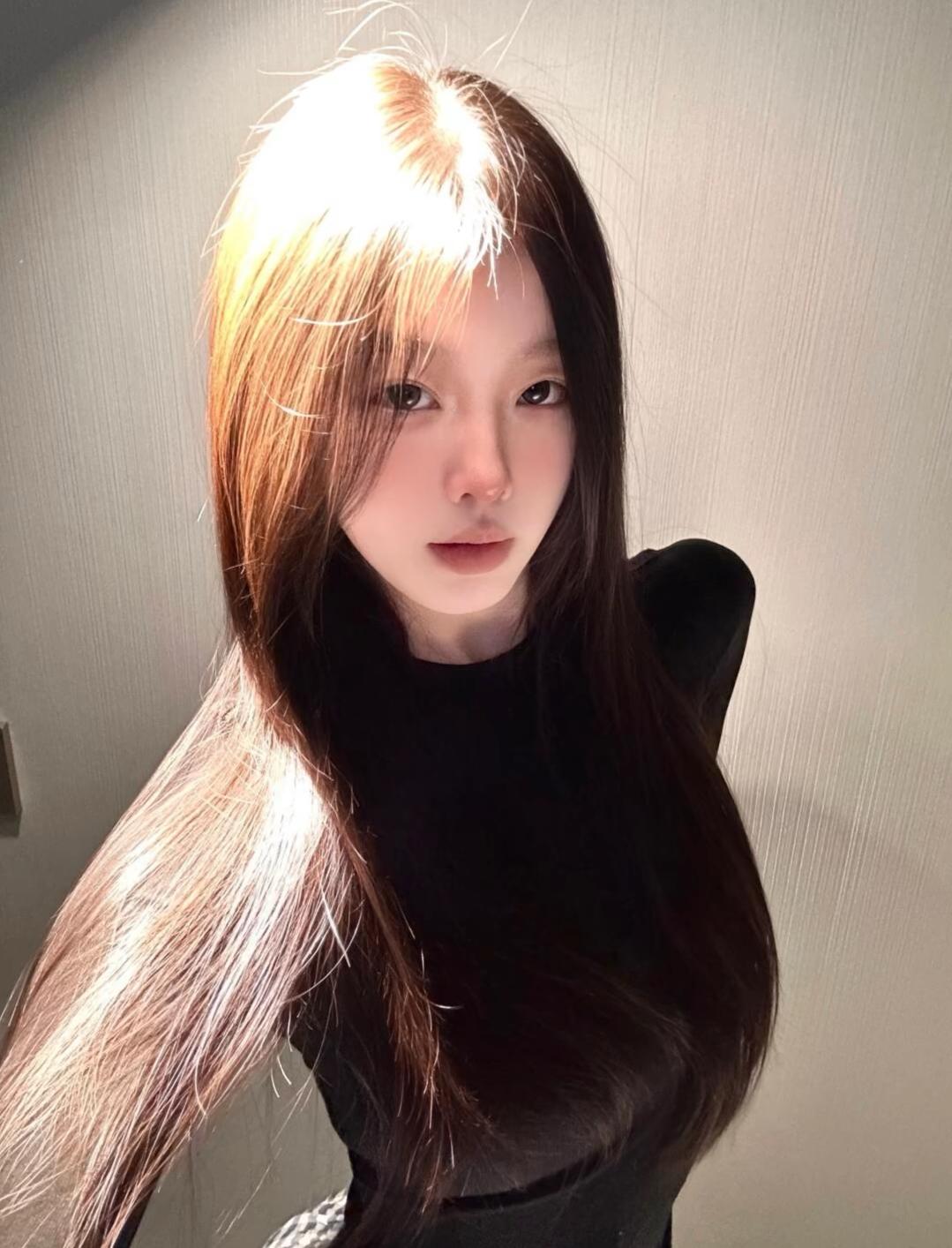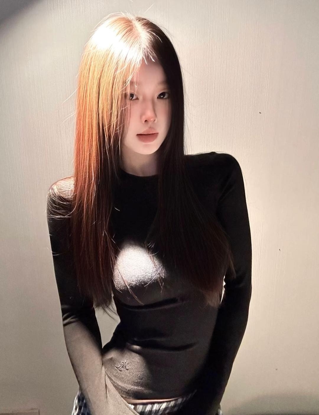 冷艳的灯光下,少女凝视镜头,散发着神秘与优雅的气息。