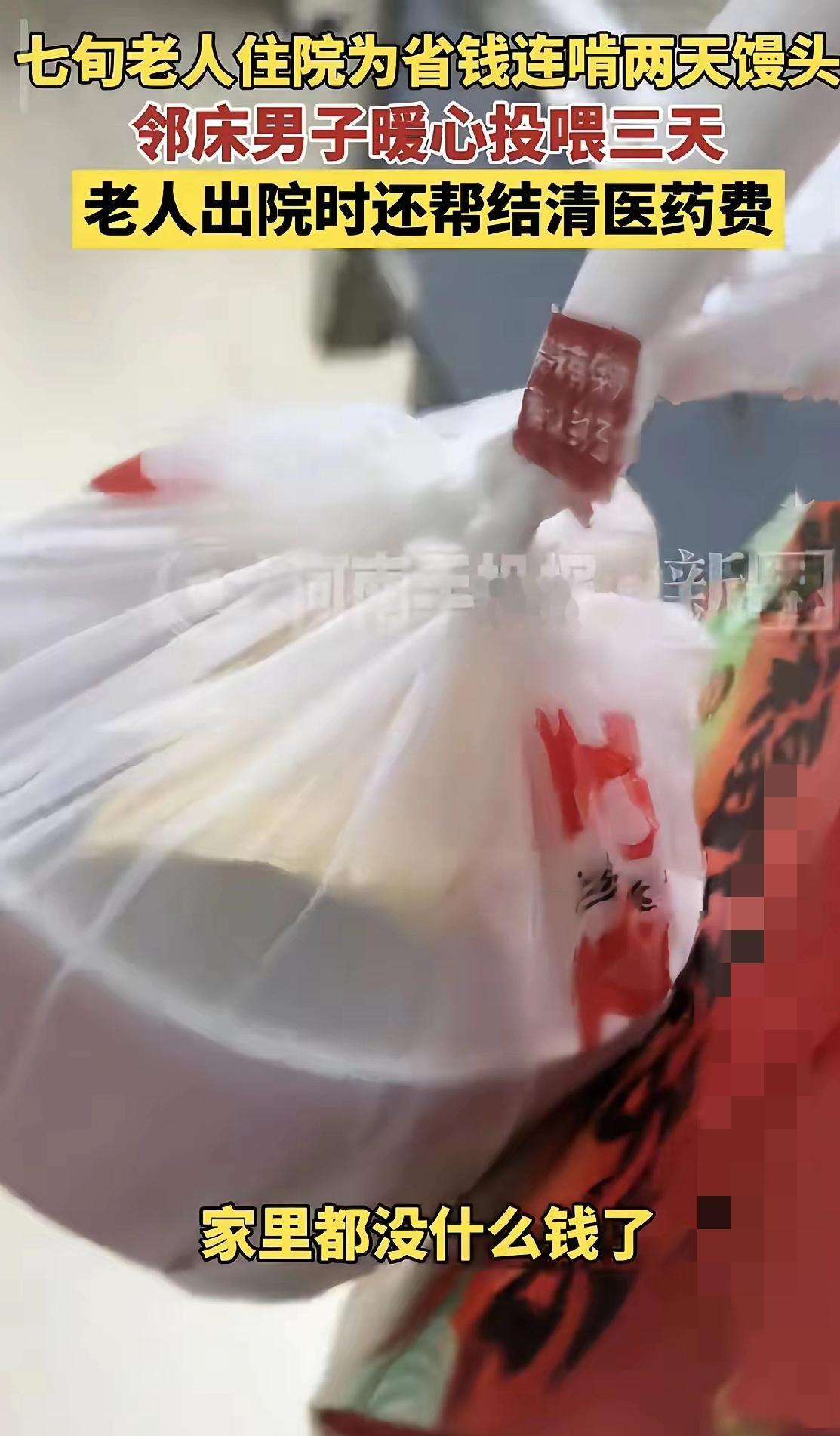 江苏老人住院为省钱, 连吃两天馒头配温水。 隔壁小伙看了不忍, 每天故意多订一份外卖, 拍着大腿装糊涂: “哎哟,又点重了!” 硬塞给老人, 还劝他住院得养身体。 老人心里明镜似的, 这哪是点错了, 分明是小伙怕他尴尬。 可出院结账时, 他彻底懵了—— 账单早被小伙悄悄结清! 真正的善意从不是施舍, 而是用笨拙的“借口”护人尊严。 这世上总有不声不响的温暖, 悄悄驱散生活的窘迫。 你遇到过这样不动声色的善意吗?老人住院