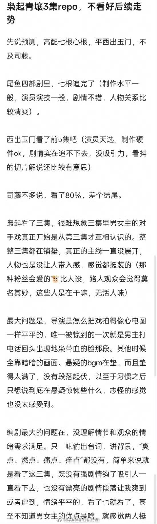 《枭起青壤》剧情平被嘲大了,没有强剧情吸引观众一直看下去,导演节奏慢,编剧喜欢鼓弄玄虚。你觉得这部剧剧情设置怎么样?