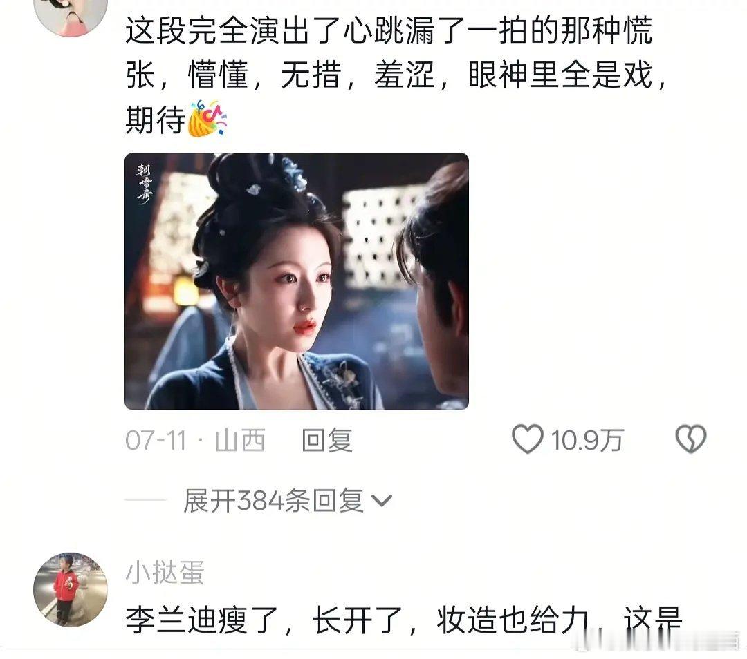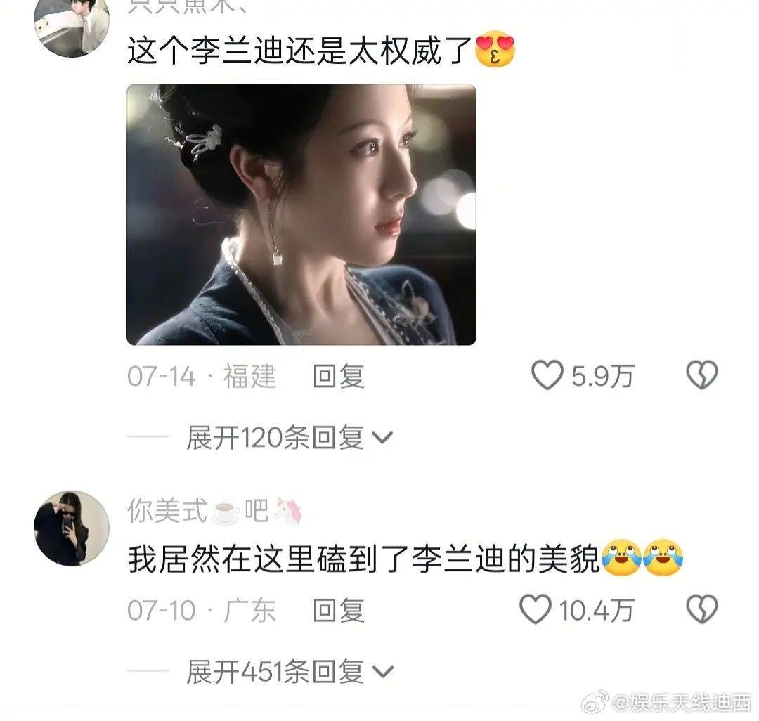 我一直觉得粉圈低估了李兰迪的美貌与演技,她其实很有大花潜质,骨相和五官都很能打,台词和演技也受到广大观众认可