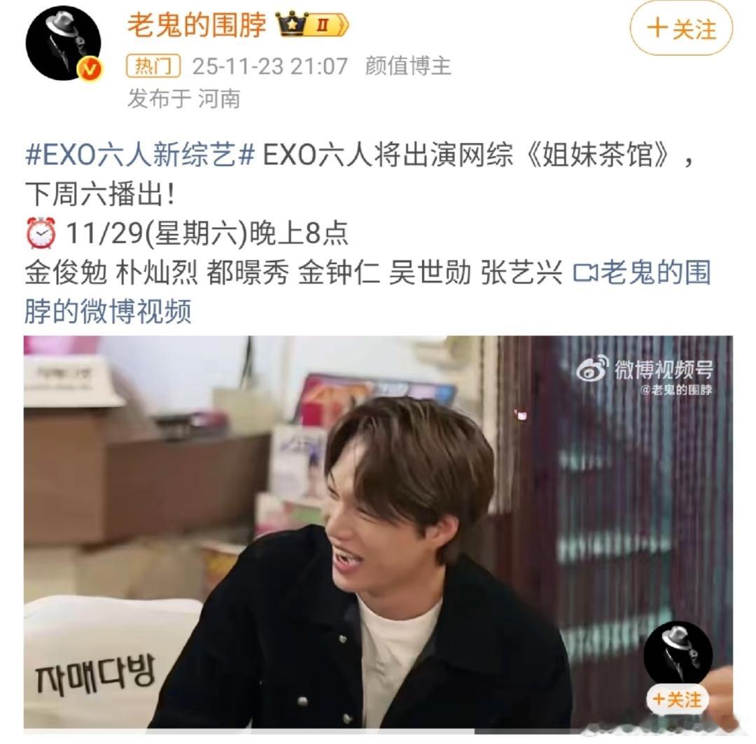EXO最新综艺《姐妹茶馆》有张艺兴!张艺兴金俊勉朴灿烈都暻秀金钟仁吴世