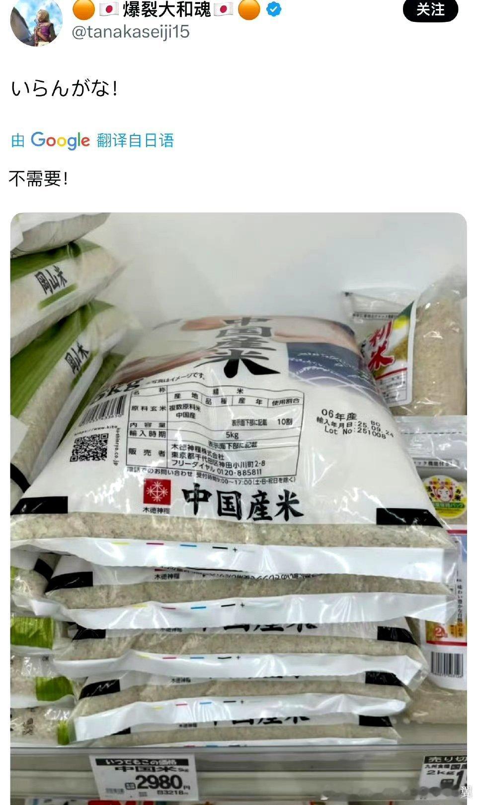 在供需失衡的情况下,部分日本超市开始上架销售中国产大米,其价格远低于日本本土大米(有时甚至便宜近4倍)。 这一现象引发了部分日本网民的不满,一些人出于民族情绪,在社交媒体上呼吁“饿死也不吃中国米”或“再贵也要买日本米”。尽管有舆论抵制,但由于巨大的价格优势,中国大米在市场上销售良好,部分地区的超市甚至出现脱销的情况。数据显示,在关西地区,中国大米的市占率有所提升。