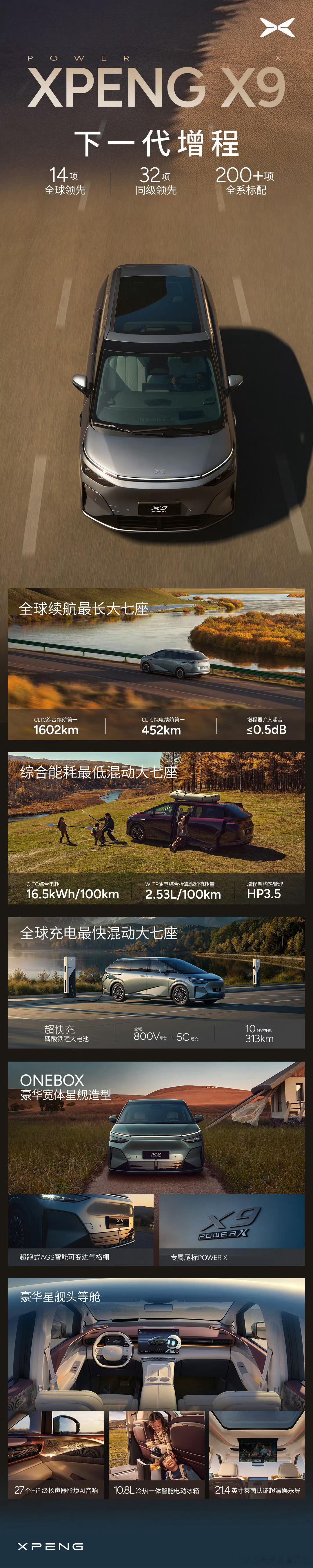 小鹏X9超级增程,一款对小鹏来说,很有代表性的车型:❶先说重点,这次在销量上,依旧很顶,上市1小时就打破纯电版本的历史全天大定数,且北方地区订单占比首超50%,且顶配版本占比79%,这里就至少说明了3件事了:一是X9增程不管产品力还是价格,都到位了;二是鉴于实际用车场景,增程版本确实对北方老铁有无法抗拒的吸引力;三是,最主打的顶配,依旧是性价比最高的版本。❷小鹏X9的这个超级增程,就是目前行业纸面参数表现最好的增程系统:吃92号粗粮、800V+5C超充、452公里的纯电续航+1602公里的综合续航、关键,这还是台能装能拉的大7座的MPV(家用相当舒服),什么含金量,不用我多说了吧?❸在SKU的设置上,X9增程也一如既往地精简, 2 个SKU,依次是Max版和Ultra版,后者比前者贵了2万,主要贵在了额外多出的2颗图灵AI芯片上(整车算力差1500TOPS),所以,如果你对智能化,尤其是明年到来的L3辅助驾驶有强需求,直接无脑选Ultra版。❹增程版价格区间在30.98~32.98万,而纯电版的价格区间在35.98~42.98万,主要区别有4个:︎●增程版全是5C的磷酸超充电池,纯电版除低配外都是3C的三元锂电池;︎●增程版导入了图灵平台,纯电版依旧是Orin平台;︎●增程版全新后置单电机,纯电版高配是双电机;︎●增程版的7.1.6的杜比全景声音响要选装(限时免费送),纯电版则是标配;所以,配置上两者是各有千秋的,就看你们怎么取舍了,但毫无疑问的是,X9增程版的综合质价比,明显要更高一些。❺超级增程版本的推出,意义主要有两个:一是有效对冲新能源购置税补贴减半带来的影响,稳住销量基本盘;二是面向海外市场,用增程去开拓那些补能基建一般的国家。最后,同步预告一下,小鹏的几款老熟人车型,明年都会陆续加上超级增程的版本,销量结构也会逐步切换为:「纯电为主,增程为辅」。小鹏X9超级增程价格真香