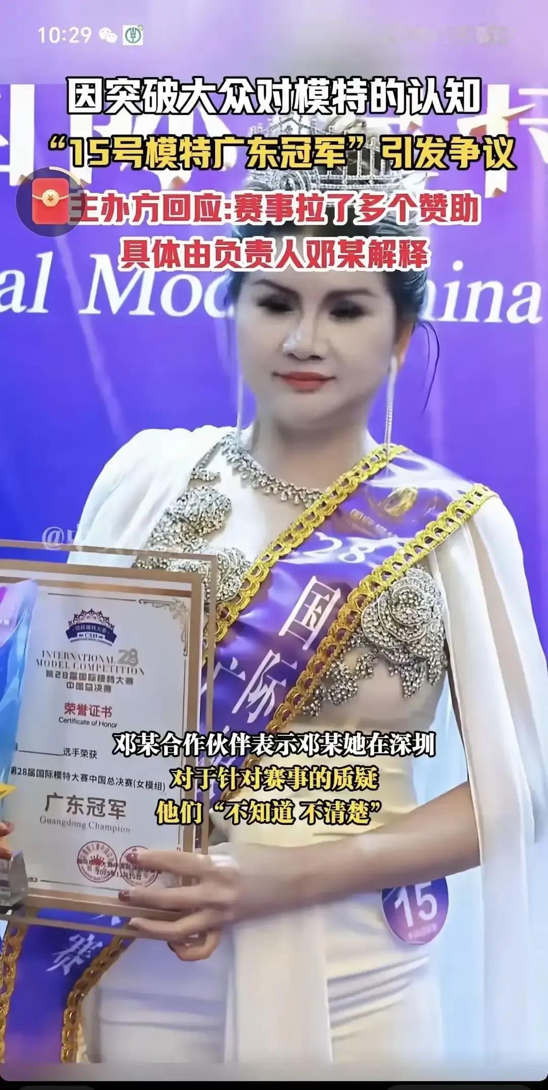 广东一场选美把冠军证书塞到15号手里,直播掌声还没停,后台就炸锅:分数第一的是37号。 工作人员一句“名单导错了”,奖杯又要往回要。 15号白高兴一晚,抖音涨粉五十万,评论区关得死死的。 37号补戴后冠,镜头没开,被嘲“暗箱”我看就是草台班子,证书都能给错,还谈什么公平。 证书发错可以重印,信任丢了就粘不回去。