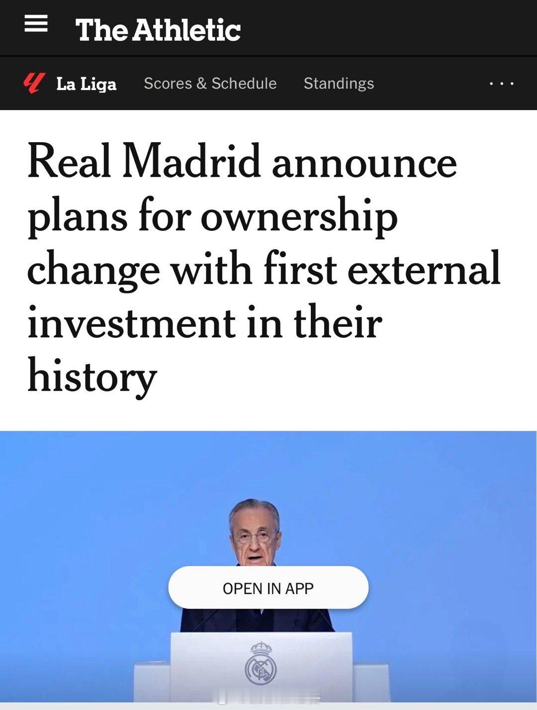 皇马要引入投资进行股改皇家马德里主席弗洛伦蒂诺·佩雷斯宣布计划改变俱乐部所有权模式,首次允许外部投资。*马德里目前由其会员(socios)集体”拥有”,这一模式自1902年建队以来一直延续至今。78岁的佩雷斯去年在俱乐部年度股东大会上首次提到可能就所有权结构变更举行”公投”,但直到周日才公布进一步细节。俱乐部高层过去12个月一直在评估不同方案的优劣,周日在马德里训练基地举行的股东大会上,佩雷斯透露计划引入”少数股东”,与俱乐部现有的98,272名会员并存。任何所有权模式的变更都需要会员投票批准。马德里主席表示,他将召开”特别大会”,届时约2,000名代表会员(compromisario socios)将有机会投票决定是否将俱乐部模式变更提交给所有18岁以上会员进行全民公投。**佩雷斯说:**“这几个月我们深入思考如何体现皇马的价值,结论很明确。我们将继续作为会员制俱乐部,但会成立一家子公司,会员保持控制权,但引入持有约5%股份的少数股东。”“这样我们就能知道俱乐部值多少钱。我们不想上市。我们会限制投资份额,确保俱乐部留在会员手中。这些投资者必须认同我们的价值观,帮助保护我们的资产免受外部攻击。”“皇马将始终有权收回投资。马德里不能仅依赖某些董事或某位主席,我们不想让它落入任何人手中。这一步骤将由全体会员通过公投自由决定。在特别大会上我们会解释更多,但我想避免这些天报纸上的所有猜测。”**“有争议但有趣”的解决方案**皇马所有权模式的变革早有预兆,但当俱乐部主席弗洛伦蒂诺·佩雷斯宣布新公司计划时,仍令人震惊——现有会员将与新的私人投资者共存。佩雷斯在马德里年度股东大会上的近两小时发言中,大部分时间都在攻击足球界的”敌人”——西甲主席哈维尔·特巴斯、欧足联、西班牙裁判以及死敌巴塞罗那。最重要的内容留到了最后——他再次解释说,这是保护马德里会员所有权免受外部攻击的方式,特指特巴斯”秘密”游说修改法律,以便西甲能获得马德里年收入的更大份额。对此的解决方案既有争议又有趣——不同于西班牙大多数职业俱乐部转为SAD(体育股份有限公司),佩雷斯说马德里正在规划一种新颖的所有权结构,允许每位会员持有一股。这将有货币价值,可以传承——但只能传给子女或孙辈——具体方式俱乐部尚未解释。消息灵通人士(匿名,因未获授权透露细节)表示,新结构有其好处。投资者将获得”分红”或俱乐部收入的份额,但不会有任何投票权。会员将继续能够选举俱乐部主席并控制俱乐部章程的任何变更,但不会每年获得任何分红。