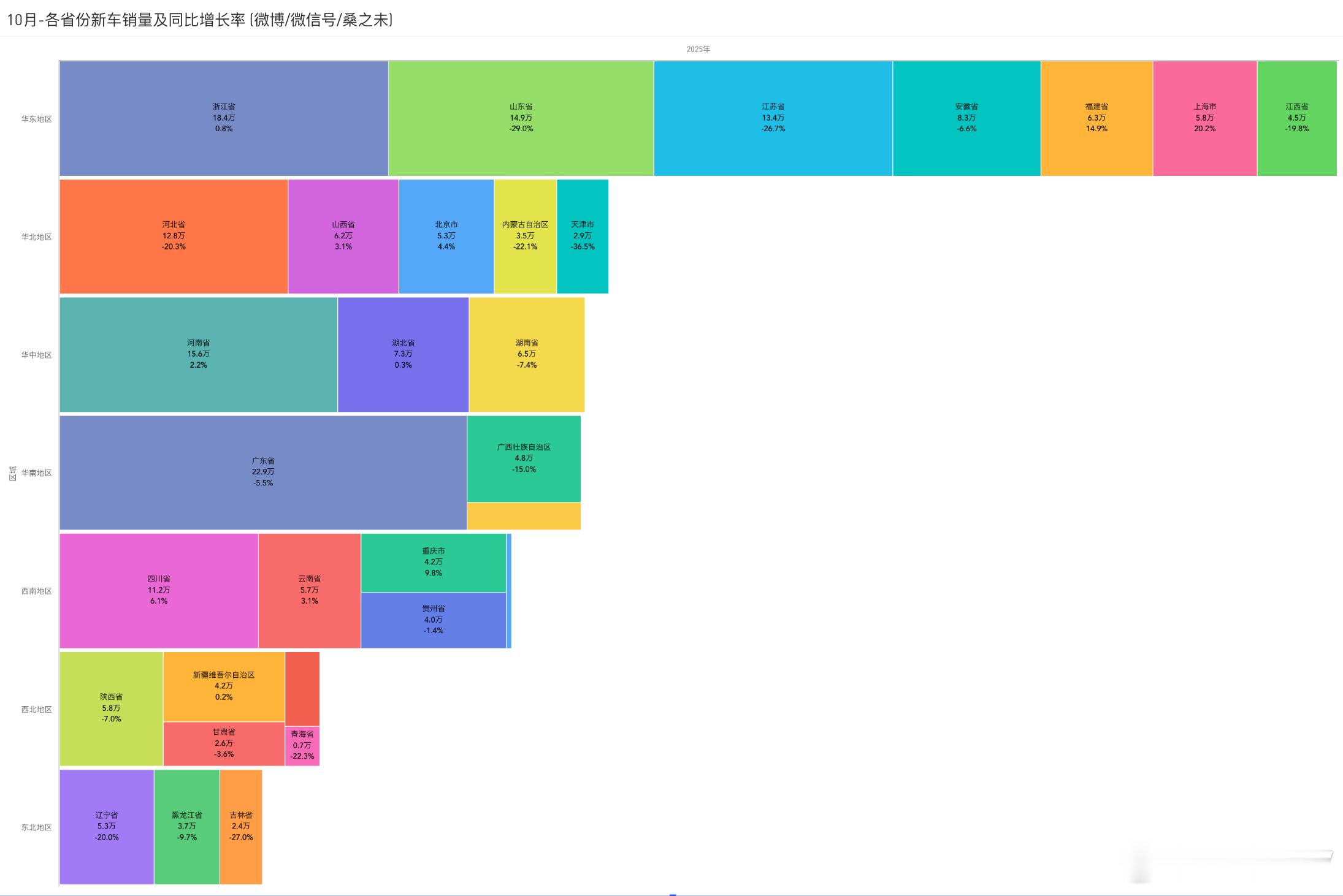 10月 各省市新车销量、同比销量数据