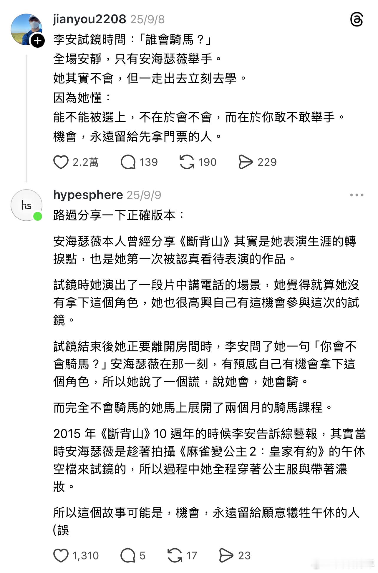 安妮·海瑟薇与《断背山》的幕后故事。“能不能被选上,不在于会不会,在于敢不敢举起