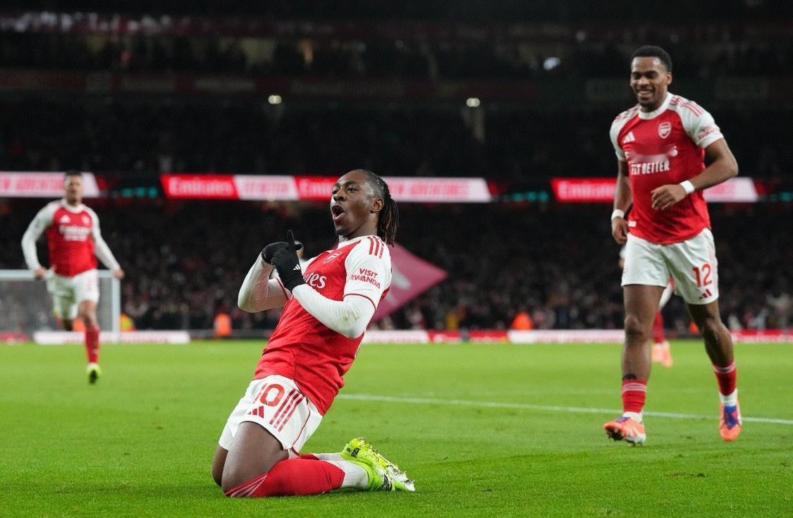 埃泽帽子戏法闪耀北伦敦德比,阿森纳4-1完胜托特纳姆热刺,继续领跑英超积分榜!里沙利松精彩吊射,拉亚成背景板! 英超第12轮,北伦敦德比在阿森纳的主场打响!上半场第36分钟,特罗萨德在禁区内接球,完成了潇洒的转身破门,为阿森纳首开纪录! 第41分钟,埃泽禁区线上停球后,灵巧的过掉两名防守队员,一脚抽射破门,阿森纳2-0领先热刺! 下半场刚刚开始,埃泽在禁区线上左脚推射破门,完成梅开二度! 第54分钟,苏比门迪后场带球被断,里沙利松直接吊射破门,拉亚由于站位靠前,没能阻止皮球入网! 第76分钟,又是禁区线附近,埃泽右脚推射破门,完成帽子戏法! 最终,阿森纳4-1赢下这场伦敦德比! 阿森纳赢球后,英超积分榜上已经领先第二名6分,本赛季正是他们摆脱万年老二的好机会!下一场他们将要在欧冠赛场对阵本赛季至今保持不败的拜仁,本赛季欧洲两支状态最好的球队相遇,会碰撞出什么样的火花呢?让我们拭目以待吧!