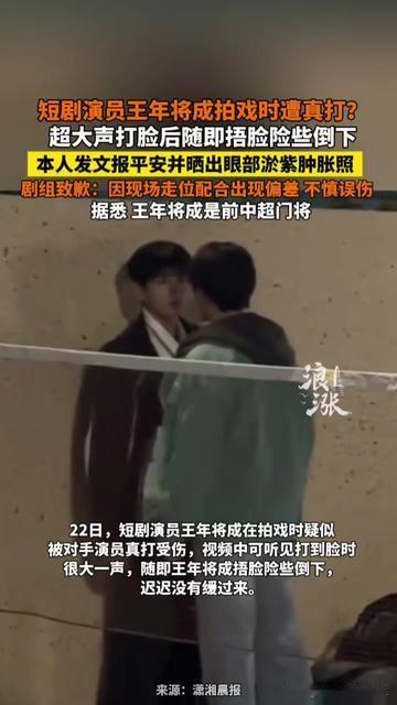 你刷短剧时拍着膝盖叫好的扇渣女戏,居然有人真挨耳光? 王年将拍戏被超大声真打,当场捂着脸差点站不稳,后来晒出眼睛淤紫的照片,只轻描淡写说没事。 我们追短剧时为解气喊打得好,却没看见他下戏揉眼睛的疼,你要的爽感,是他用脸接的实打实的巴掌。 有人说演员就得为效果拼,也有人说真打太离谱,这不是敬业是折腾。 但我看着他肿得发亮的眼睛,只觉得堵得慌:短剧圈的爆剧情背后,是小演员藏起来的疼,没人问疼不疼,只问戏够不够爆。 你觉得拍戏为了效果真打合理吗?换你会扛这一巴掌吗?