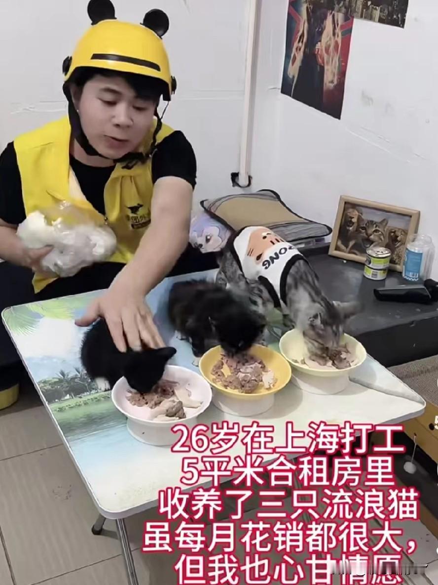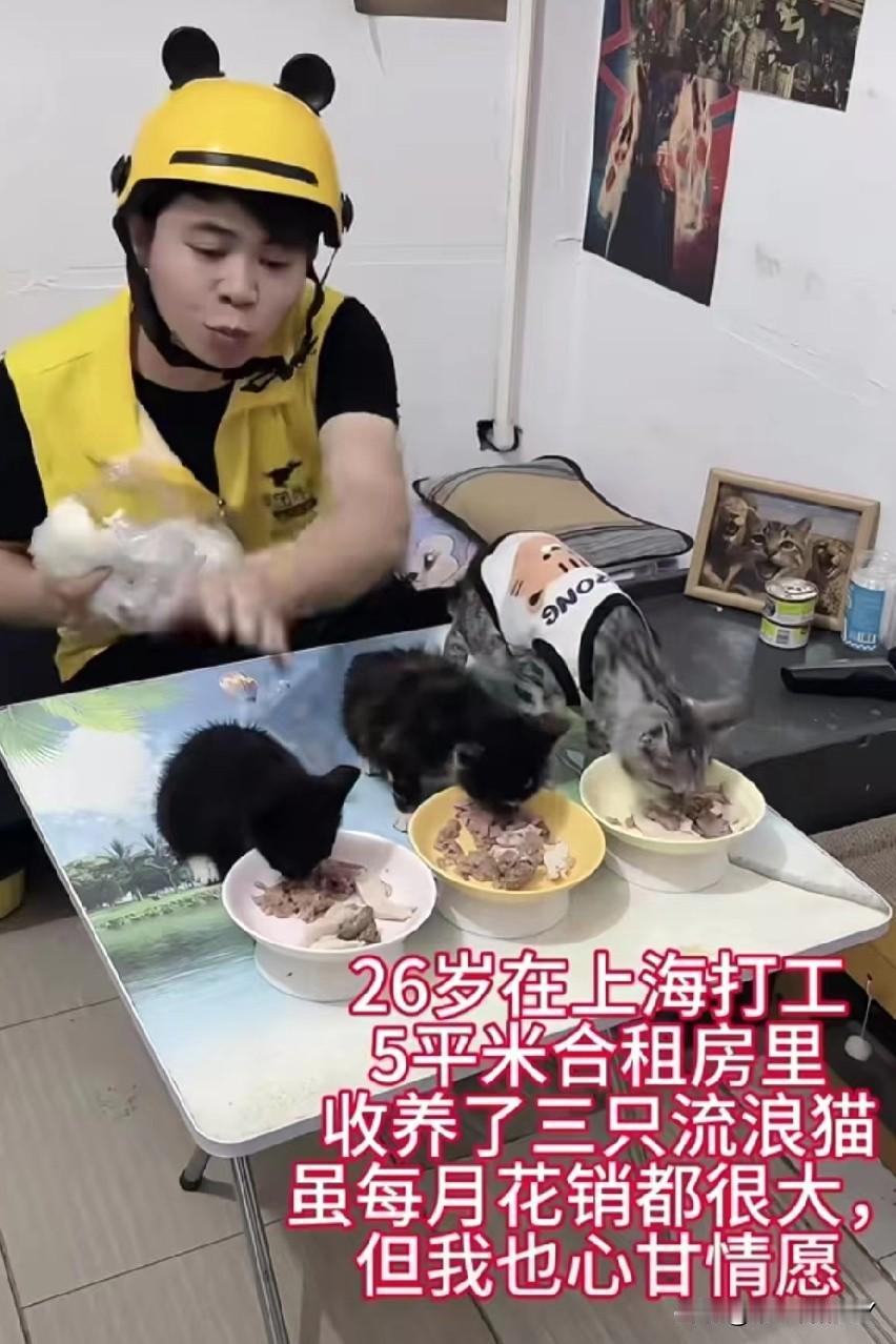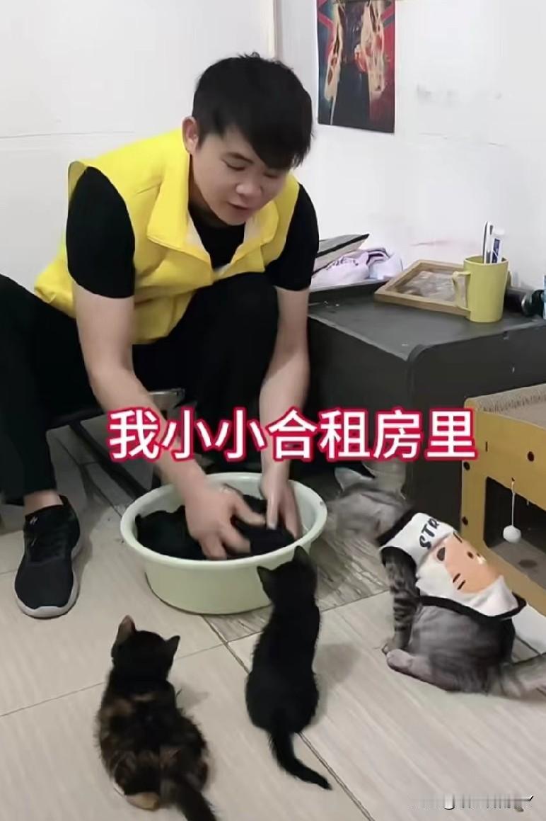 五平方合租房里的双向治愈:他和三只流浪猫的“家”,看哭了多少打工人? 在上海5平米的合租房里,26岁的外卖小哥正蹲在地上,给三只流浪猫喂饭。 曾经,他是这座繁华都市里孤零零的一个人,奔波在送餐路上,回到出租屋只剩冷清。 直到遇见了芝麻、花生、汤圆这三只流浪猫,他的生活彻底变了样。 每月开销因养猫增大不少,他却笑着说:“心甘情愿”。他会在下班后第一时间回家陪伴猫咪,会蹲在地上给它们洗澡,会拿着扫帚一边扫地一边和猫咪玩闹,小小的出租屋被他打理的温馨又有烟火气。 这一幕,戳中了多少在外打拼的打工人。我们都曾在异乡感到过孤独,是那些毛茸茸的小生命,让冰冷的出租屋有了家的温度。 他养的是猫,更是在疲惫生活里为自己搭建的精神港湾;猫依赖的是他,更是在流浪漂泊后找到的终身依靠。 原来,爱不会因为空间狭小而吝啬,每一份对流浪动物的善意,都是在给平凡的生活注入一束光亮。 愿每个漂泊的灵魂,都能找到属于自己的“小小家”,愿每只流浪的毛孩子,都能遇到愿意为它停留的人。 流浪猫救助 冬日生活打卡季