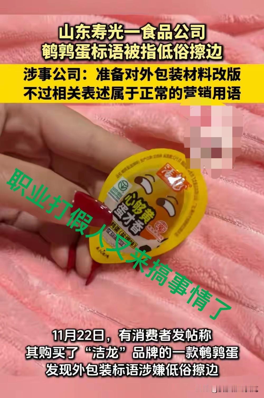 有些人天生坏种,看不得别人过得好,山东一公司鹌鹑蛋标语被人别有用心的举报涉黄,缺不缺德? 此“心”是指的蛋的心,鸡蛋的心黄,鸡蛋才香,这话也没毛病呀,至于图片,这个可爱的蛋蛋表情也很好看呀,这一曝光,别的毛病没查出啥来,说明这款食品质量绝对是安全的,也让人知道了还有这个品牌的鹌鹑蛋,正好给人家打了免费的广告了,所以赶紧搜起来,买起来。