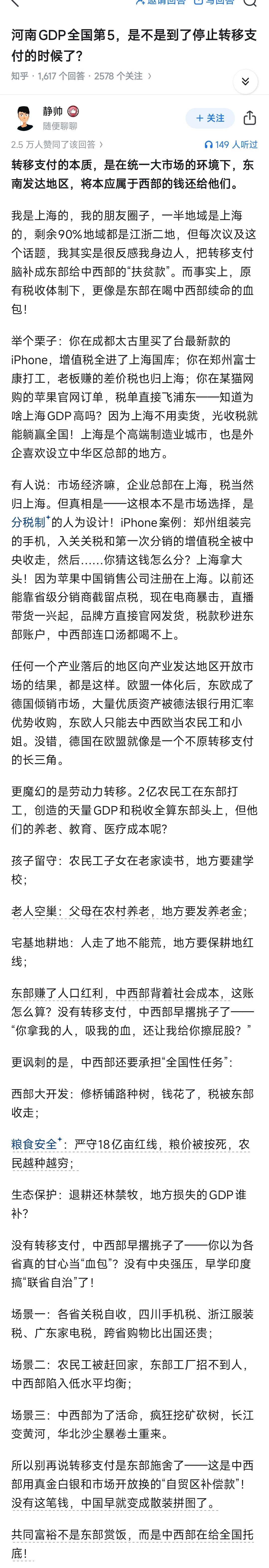 哥们写得很好,支付转移不是东部赏饭,而是中西部托底东部。