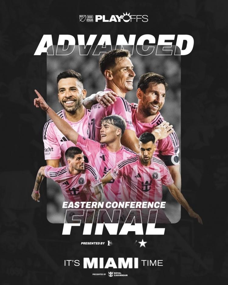 【晋级东部决赛】✔️迈阿密国际历史首次晋级东部决赛!👊决赛对手将是~费城联合VS纽约城~的胜者(今日8:45开踢)!