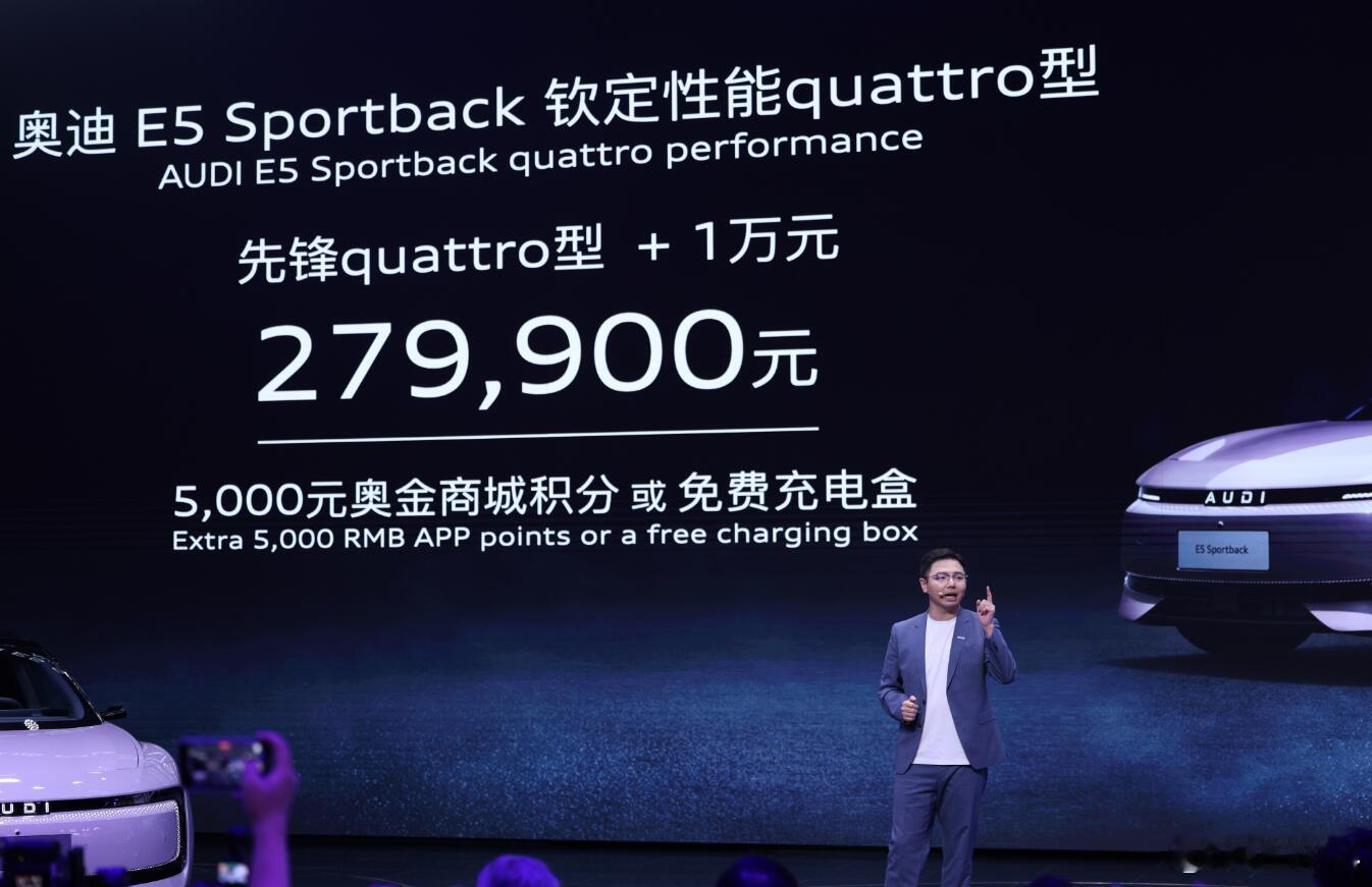 该说不说,E5 Sportback这个的性价比确实很可以,价格能到23万元以内,顶配在30万元以内,如果是燃油的奥迪性能车,绝对是不可能做到这个价格的,大家可以看看RS6都什么价位了,哪是普通人能买得起的。其实,E5 Sportback也是经过了大量的“本土化改良”的产物了,它几乎一切的设计都看齐中国新势力,座舱已经比大多数新势力车企都更激进了,彩电、大沙发、AI交互应有尽有,要我说,它就是一个“德国新势力”,有着浓郁的中国本土气息,彻底改变了人们印象中奥迪保守刻板的样子,谁说奥迪不会讨好咱们中国消费者呢?