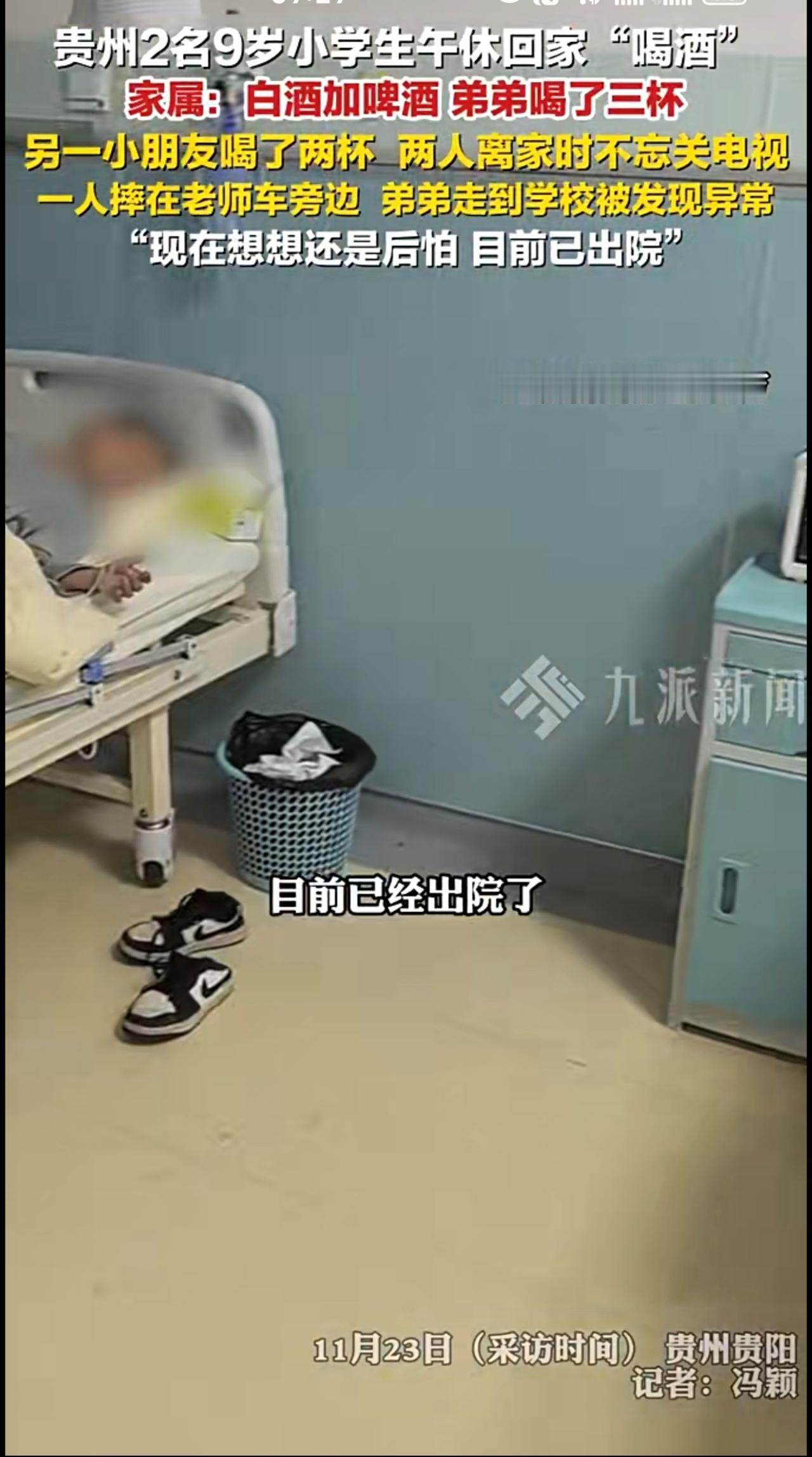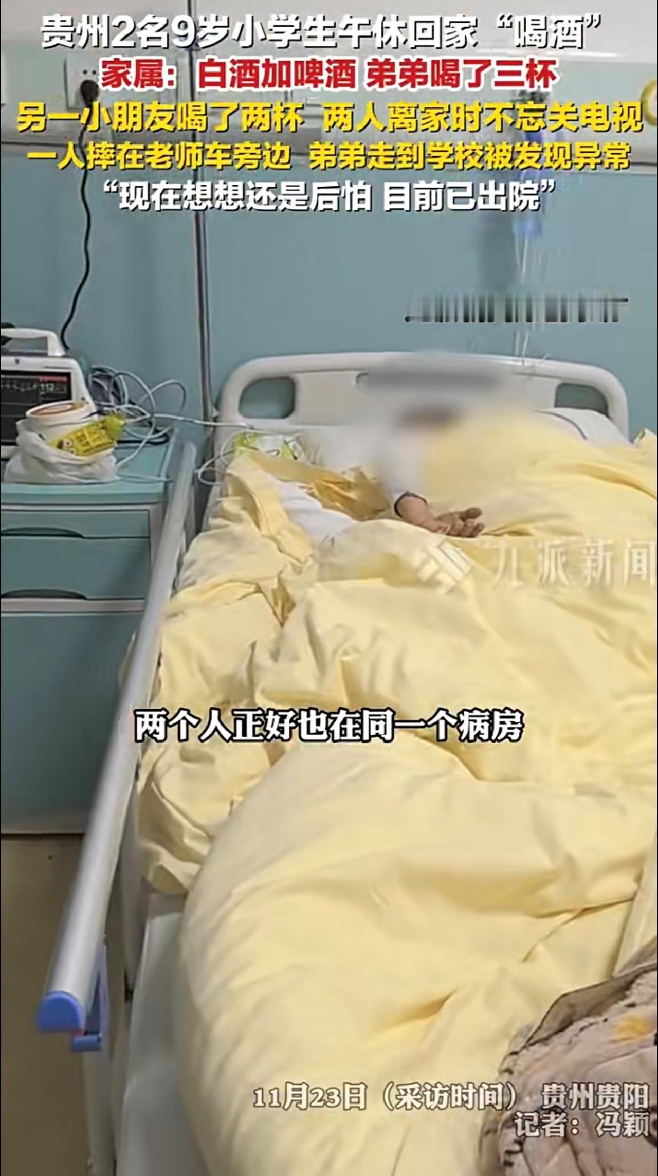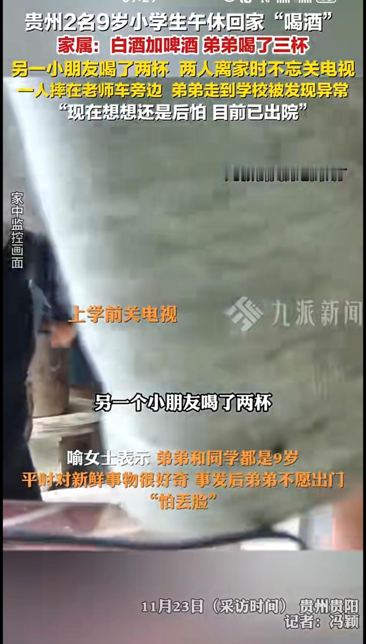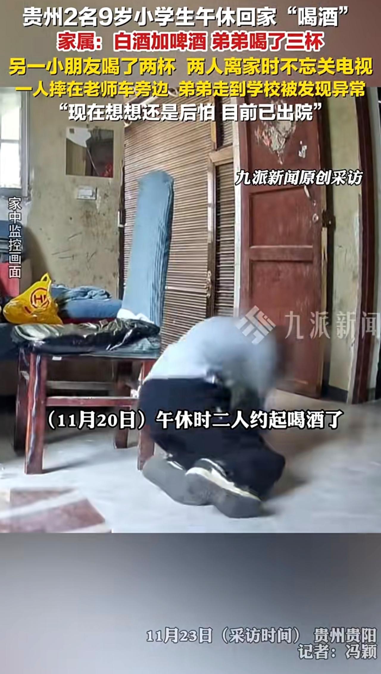 11月23日(采访时间),贵州贵阳,2小男孩午休回家喝酒家属发声 :白酒加啤酒,弟弟喝了三杯,走到学校被发现异常,另一小朋友喝了两杯,摔在老师车旁边。