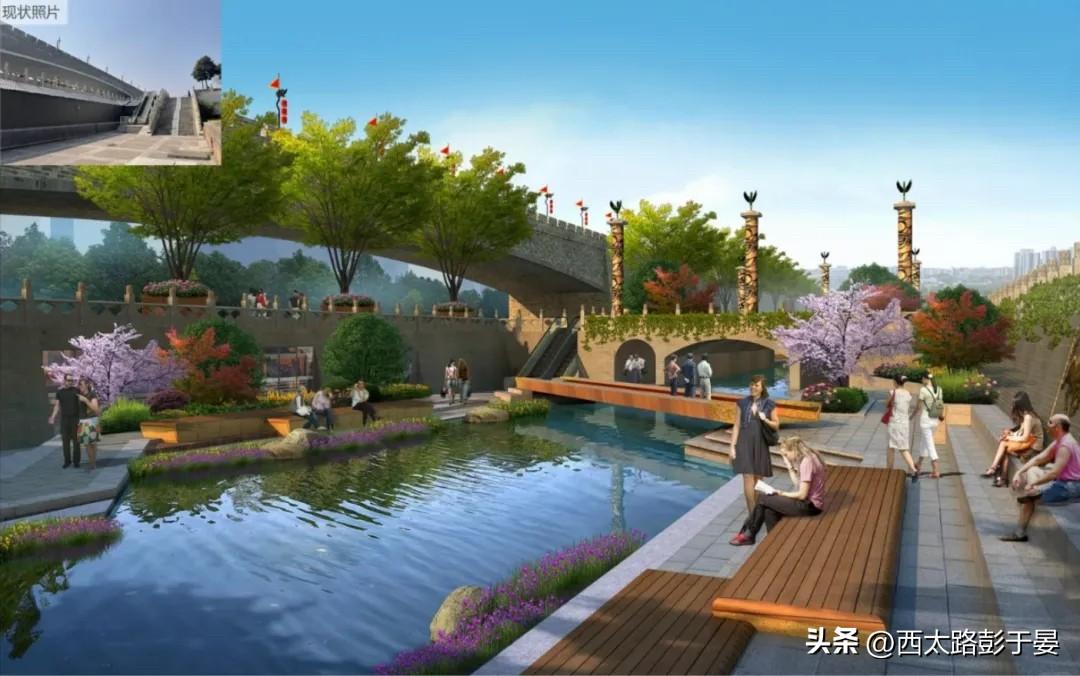 西安火车站旁边那段藏了好久的护城河,现在终于露出来了!按计划今年年底就能建好,以后从西安站出来,一眼就能看到护城河,不用再绕着找啦。 这段改造是今年1月开始的,就在火车站南广场那边,从尚勤门到尚德门那一片。目前,暗涵河道清淤工程、底板、侧墙及顶板混凝土浇筑工程等已完成,正在进行古法箍城、石材栏杆基座和广场铺装施工。 等弄好后,这里会是“上下两层”的设计:下层专门用来排污水、雨水,上层则会弄出4片小景观湖。河里还会种上水生植物,装曝气机,让水更干净。另外,火车站南广场那5万多平方米的地方也会翻新,绿化面积能多一半,还会新修公厕、小桥这些,以后从火车站出来,环境会比现在舒服多了,咱西安的“门面”也更像样了。