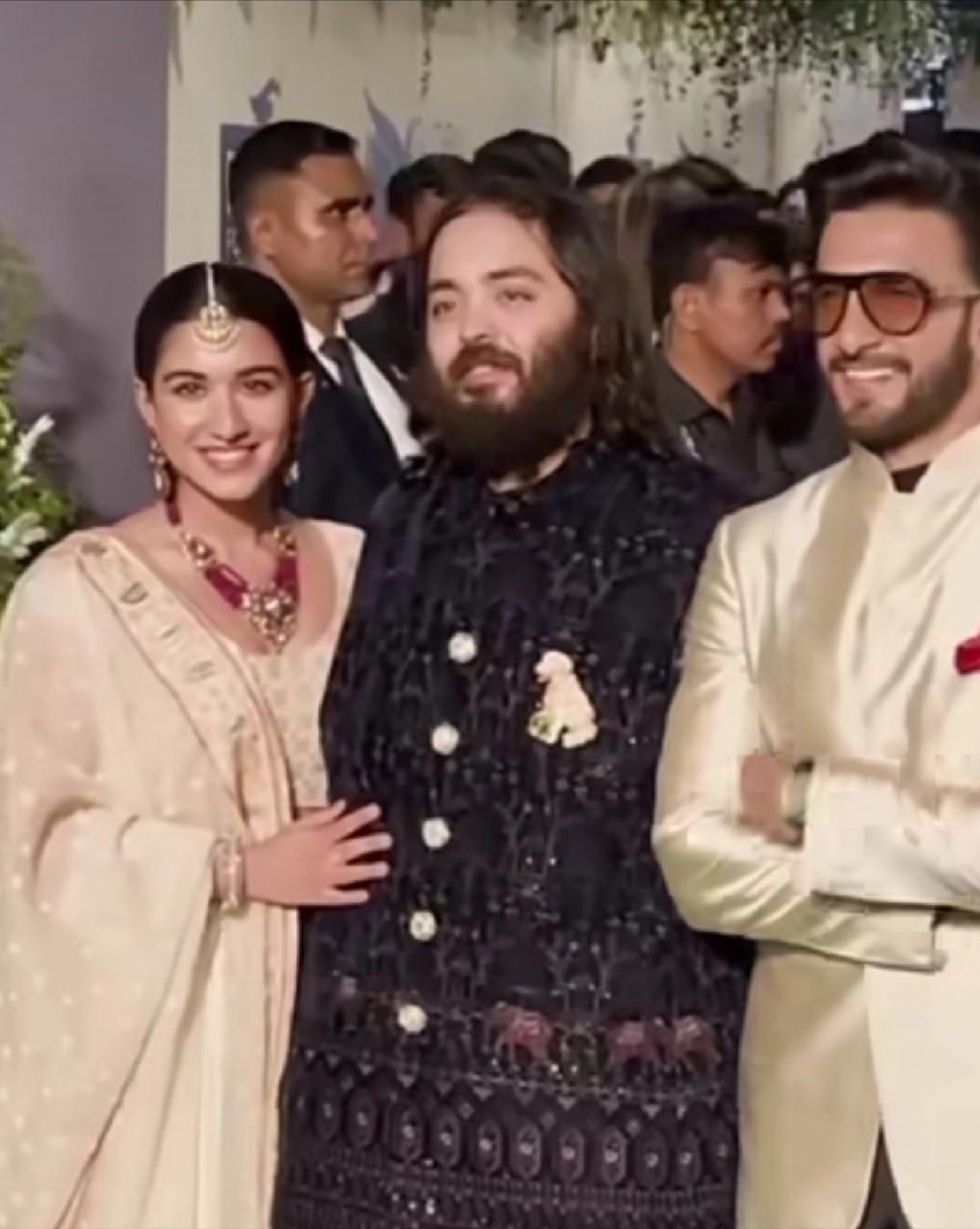 11月22日,印度首富夫妇带着小儿子夫妻俩一同出席活动。 首富夫人妮塔罕见穿着一