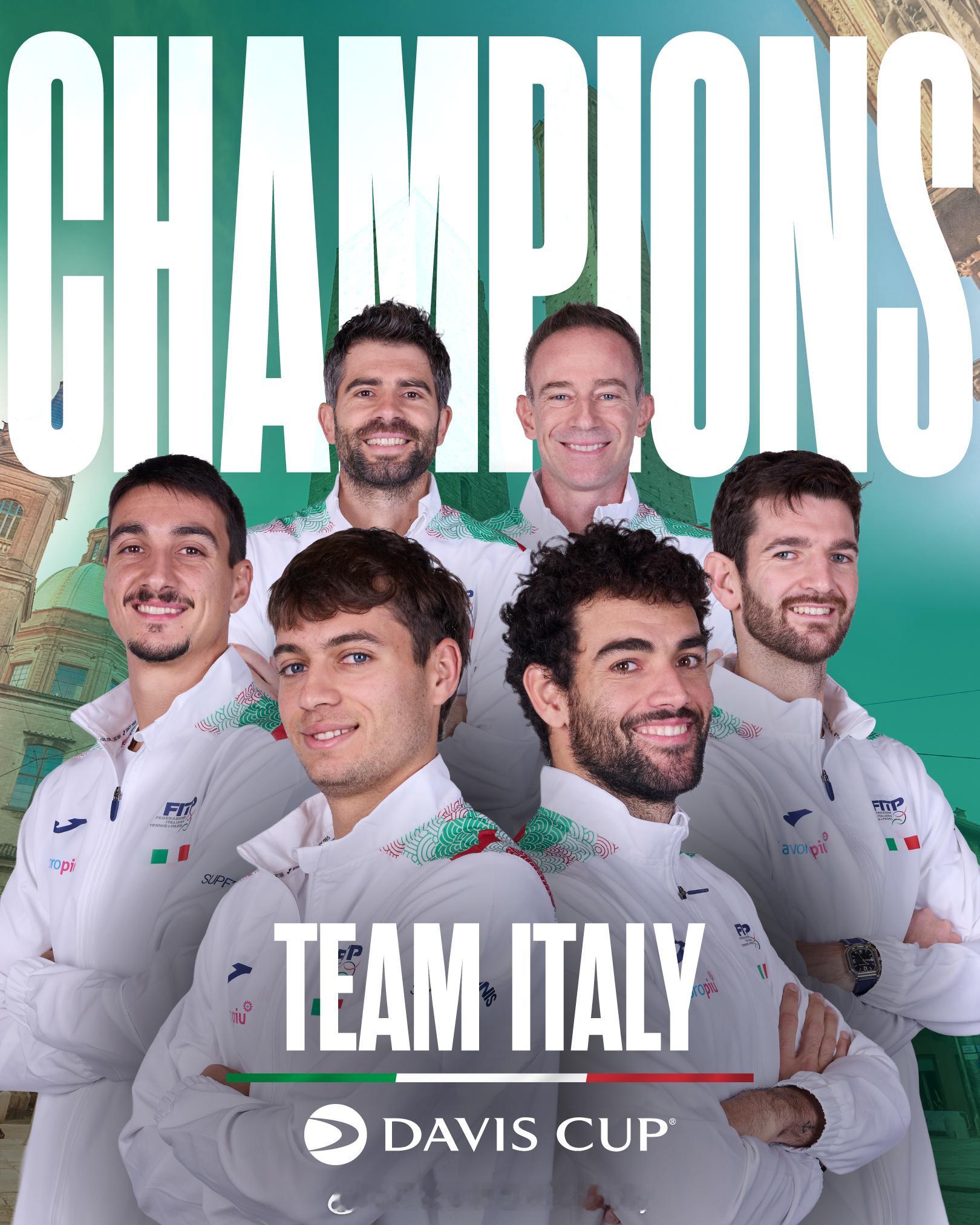 意大利连续3年夺得戴维斯杯冠军🏆🏆🏆意大利🇮🇹直接两场单打锁定胜局,意大利以大比分2-0击败西班牙,卫冕成功贝雷蒂尼 63 64 卡雷诺•布斯塔科博利 16 76(5) 75 穆纳尔