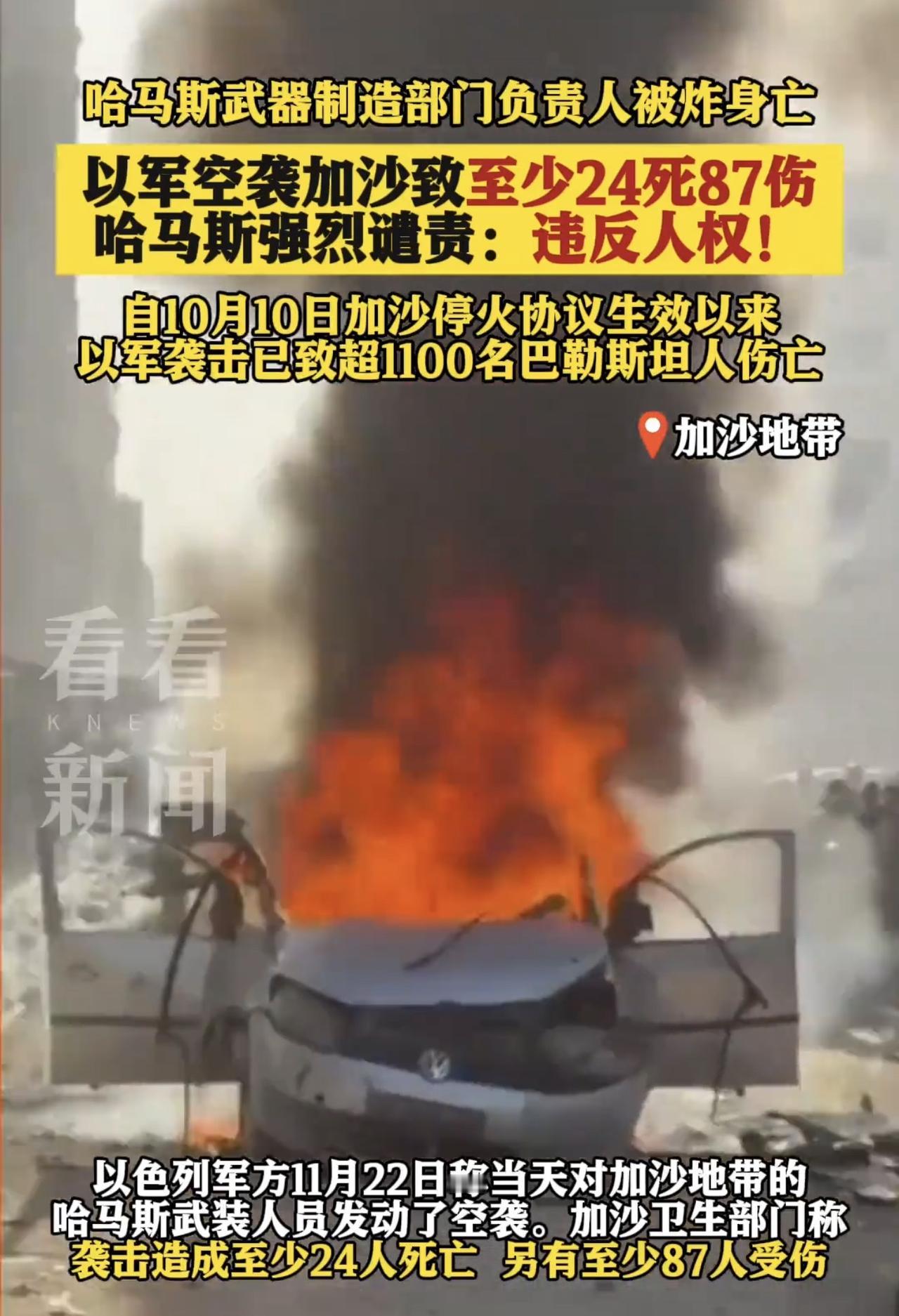 停火就是个幌子,哈马斯果然上当了!至今,已经导致1100人死。 并且,只要武装人员刚越过停火线,立刻就遭到击杀。 只见,一名武装人员从汽车上下来,向驻扎在此地的以色列军队加沙南部旅开火,立刻就遭到数倍子弹反击身亡。 22日,又有一批哈马斯,越过停火分界线袭击以军士兵,遭到反击炸死5名成员。 双方现在扯皮的地方,就是"黄线"边界,由于模糊不清,以军擅自扩大控制区,很多巴勒斯坦人就无故杀掉,从宣布停火那天开始至今,已经致死1100多人。 并且,停火后,哈马斯又一个最重要的成员,武器装备部门负责人,这两天也被以军成功猎杀掉。 以色列强调这个人,是武器供应链的"关键来源"。 以防长卡茨宣称,还要在控制区,没有任何限制地打击哈马斯,摧毁加沙所有隧道! 看来,加沙的停火并没有被实现,只不过换了一个方式继续打下去。